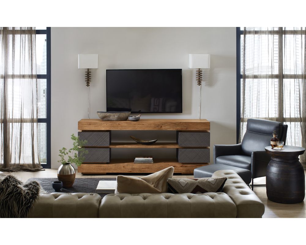 From Sofas and Sectionals.com: Introducing the Big Sky Entertainment Console - a stunning piece of furniture that will bring the beauty of the American wilderness into your living room. This console is the perfect blend of ruggedness and elegance, making it a standout addition to any home. Plus, with its easy assembly process, you can enjoy the beauty of this console in your living room in no time.