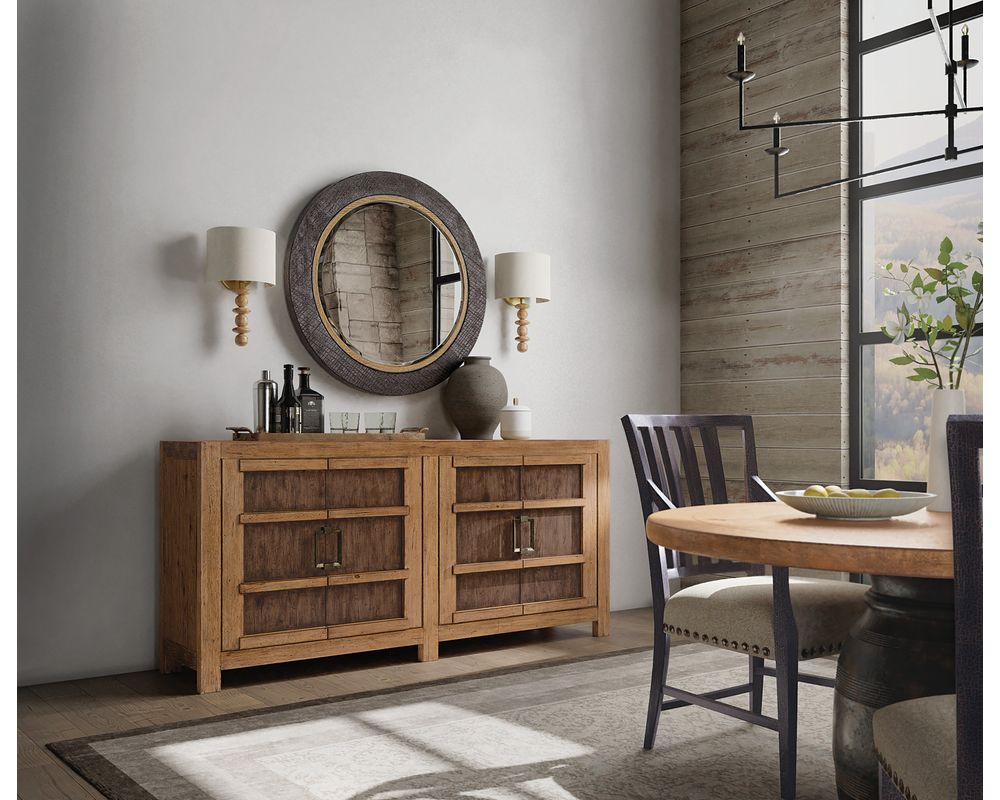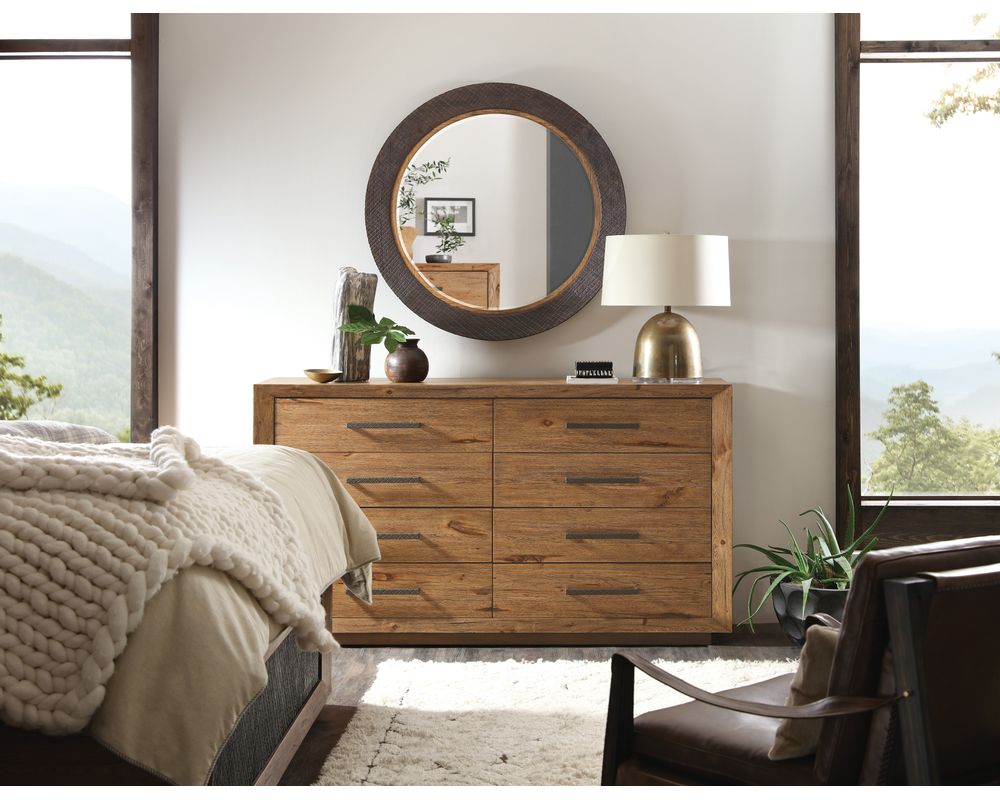 The natural beauty and near-mystical experience of the American wilderness inspires a spirited collection from Hooker Furniture, a celebration of dramatic vistas and the freedom to roam, a land of rough-hewn timber and towering snow-capped peaks, boundless plains, and calm, clear mountain lakes. Hooker brings home a dream of wide-open spaces and a life lived in tandem with iconic landscapes with furnishings that evoke the weight, heft, and heritage of post and beam construction, the mark and artistry of true craftspeople, and substantive, thoughtful designs right for today. Watch for warm, rustic, hickory veneer and rich finishes like charred timber, dusk, and avalanche, organic textures like burlap and top grain leather, forged hardware, and classic moldings for the traditionalist. Those with a more modern bent will be thrilled by the clean lines of waterfall edges, crosshatch surfaces, and planking details that speak to authenticity and the hand of the maker. These elements bring a contemporary twist to the collection, adding excitement and a sense of the future. Welcome to the peaceful, easy feeling of Big Sky. It’s time to breathe.
