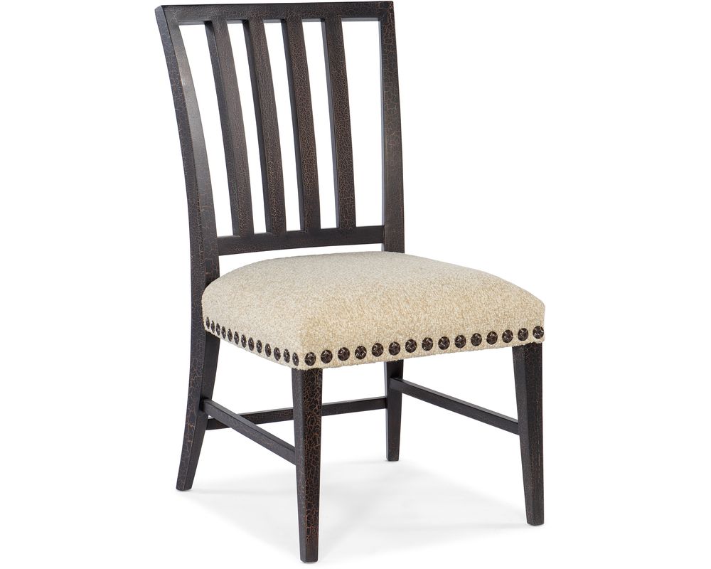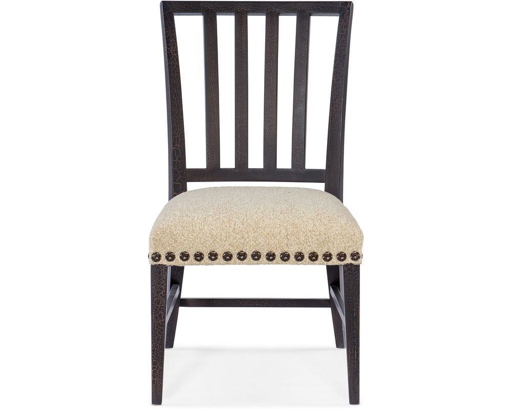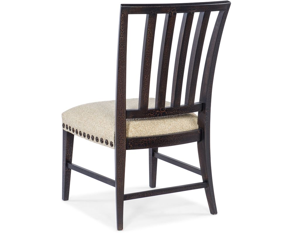 Crafted with meticulous attention to detail, the Big Sky Side Chair features a stylized spindle back that adds a unique and eye-catching element to its overall look. The shaped wood legs and three stretchers, finished in Charred Timber, provide a sturdy and durable foundation for the chair, making it a standout piece in any room.