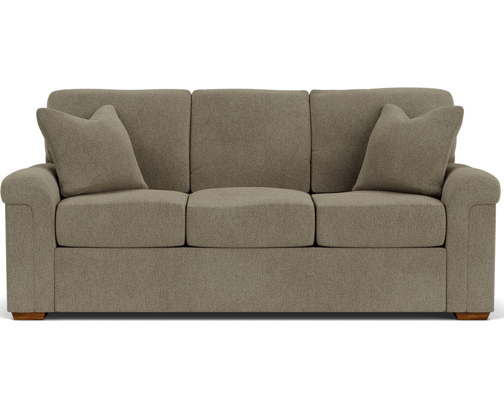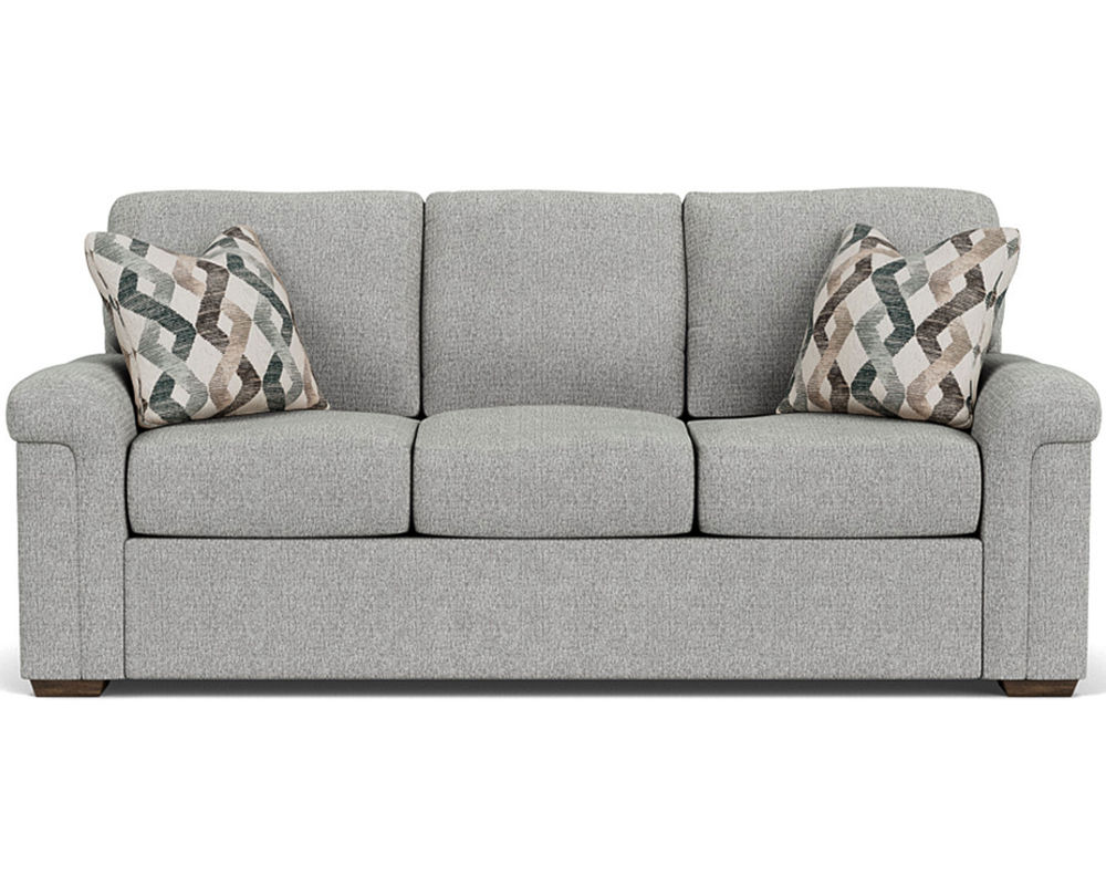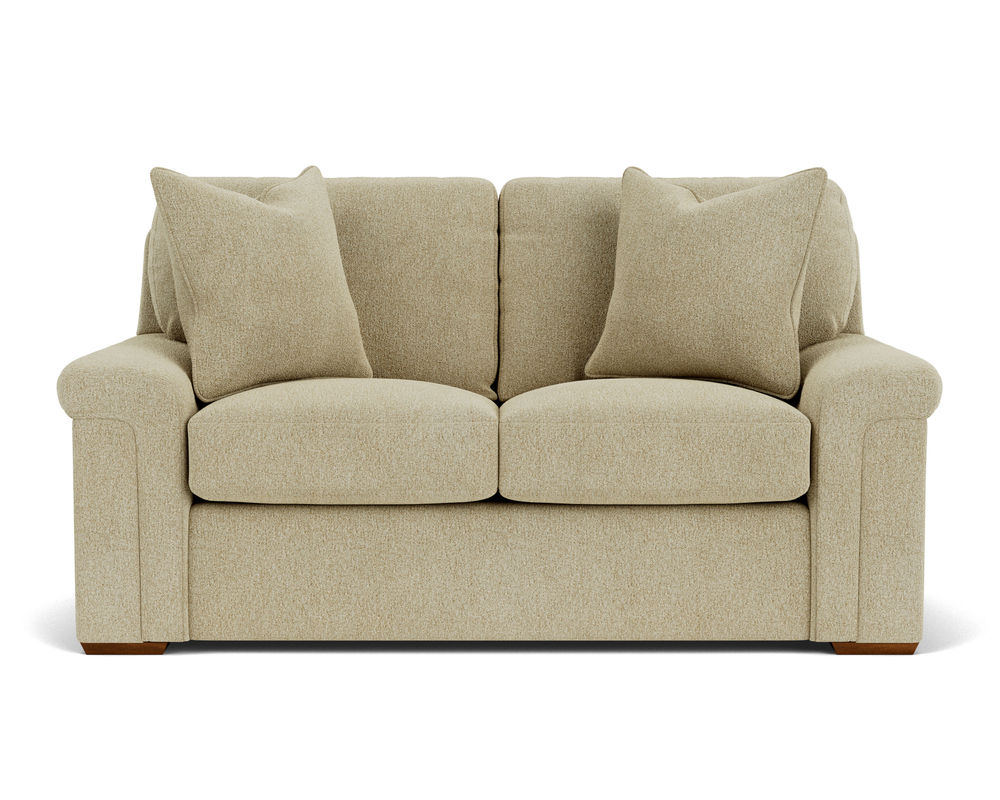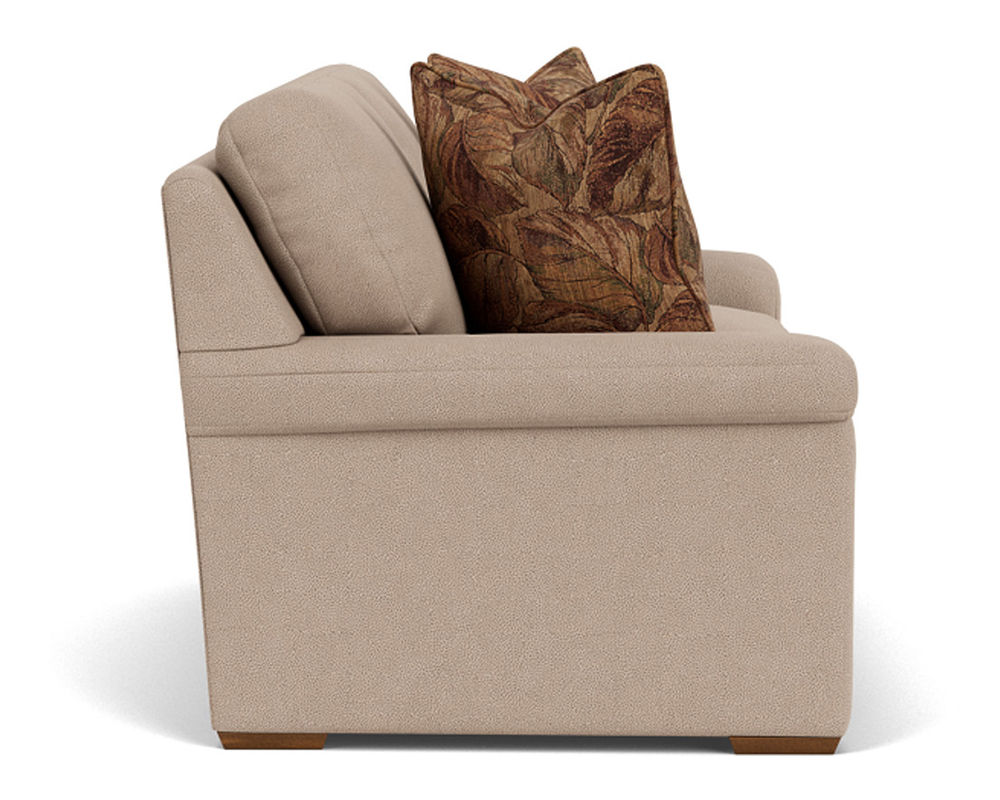 The Flexsteel Blanchard 5649 Loveseat is the perfect combination of form and function. Its transitional design is sure to be a hit and will add a touch of style to any living space. The ample and well-constructed cushions provide the utmost comfort and relaxation, and the reversible seat cushions preserve their shape and extend the life of the fabric. The bold square, tapered block leg adds a modern touch, while two throw pillows add a pop of color. The soft padded track arm with a square, tapered block leg adds to the overall look and feel of the piece. Whether you're looking to relax or entertain, this loveseat is the perfect fit.