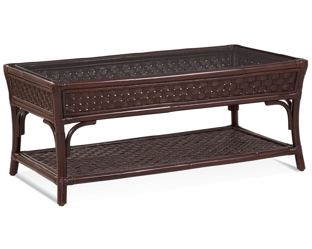 Cocktail Table – A rectangular centerpiece with glass top and lower shelf, ideal for gatherings and stylish storage.