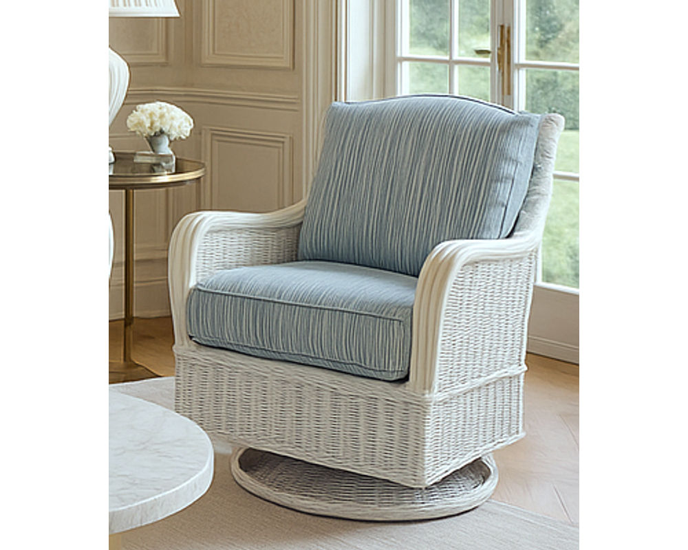 The Bodega Bay Swivel Glider brings a new level of relaxation to coastal-inspired living. Handwoven wicker, graceful arm details, and plush cushions combine with the gentle ease of both swivel and gliding motion. Whether you’re curling up with a book, enjoying conversation, or simply unwinding, this piece blends timeless design with the smooth comfort of movement. Built with premium craftsmanship and customizable in fabrics and finishes, the Bodega Bay Swivel Glider is as versatile as it is inviting.