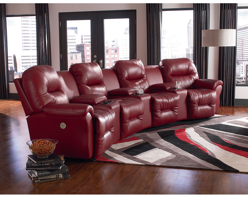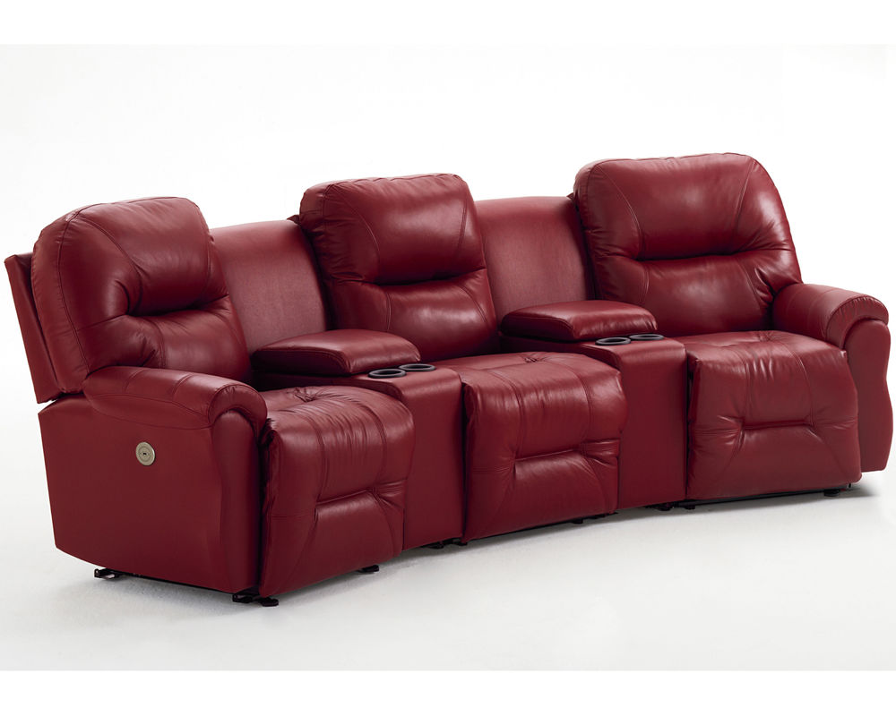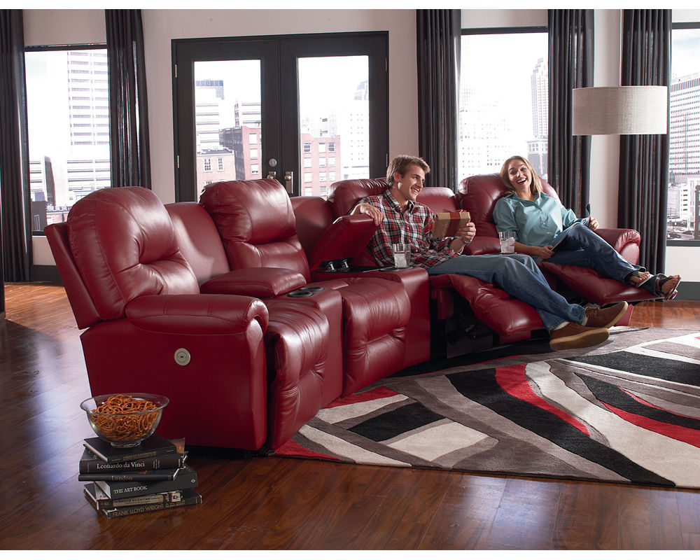 Binge-watch your favorite series in style and comfort with the Bodie theater sectional. Add as many seats as you wish to fit your space. The outside arm recliners feature a reclining handle, while the armless recliners feature an inside handle. Upgrade to power and relax at the push of a button - plus enjoy the convenience of a built-in USB charging port. The power armless recliners have a tethered hand wand. The console wedges offer storage of your remotes or magazines and feature two cupholders, and the option of a soft-close bottom drawer.