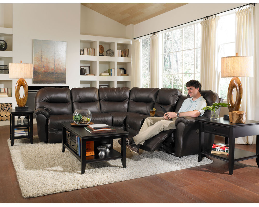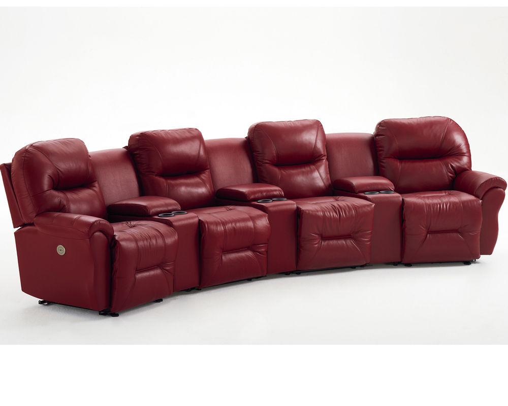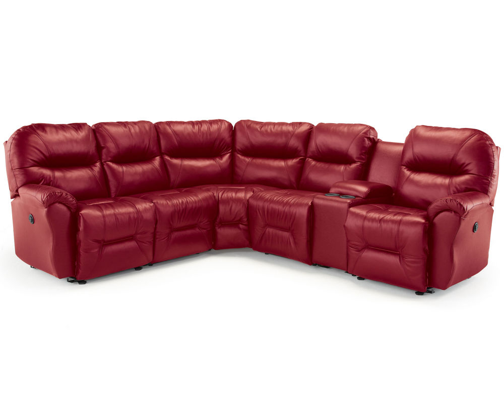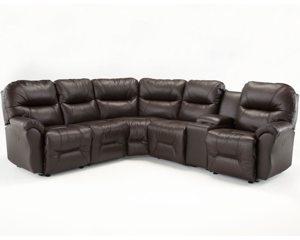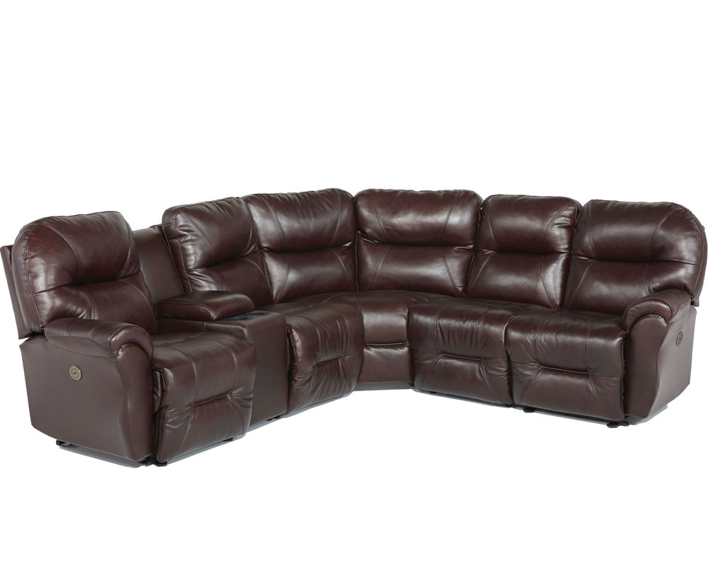 The Bodie M760 Leather Reclining Sectional is the perfect combination of contemporary style and traditional comfort. With nine individual pieces, you can create your custom configuration and choose from hundreds of stylish fabrics and leathers from Best Home Furnishings. This sectional also features a patent pending bracketing system that prevents the seats from separating on the floor. The consoles come with the option of a soft close drawer for extra storage, and the recliner pieces are also available with the power recline option. This sectional is perfect for any room in your home and offers a cozy, down-home feeling that will make you never want to leave!