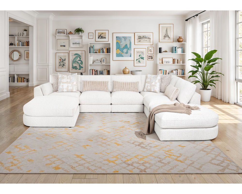 But that's not all. This sectional's modular design allows you to customize it according to your space and needs. You can easily rearrange the pieces to create the perfect setup for your living room. The coordinating throw pillows in soothing hues add a chic touch, making this sectional a beautiful blend of modern style and everyday comfort.