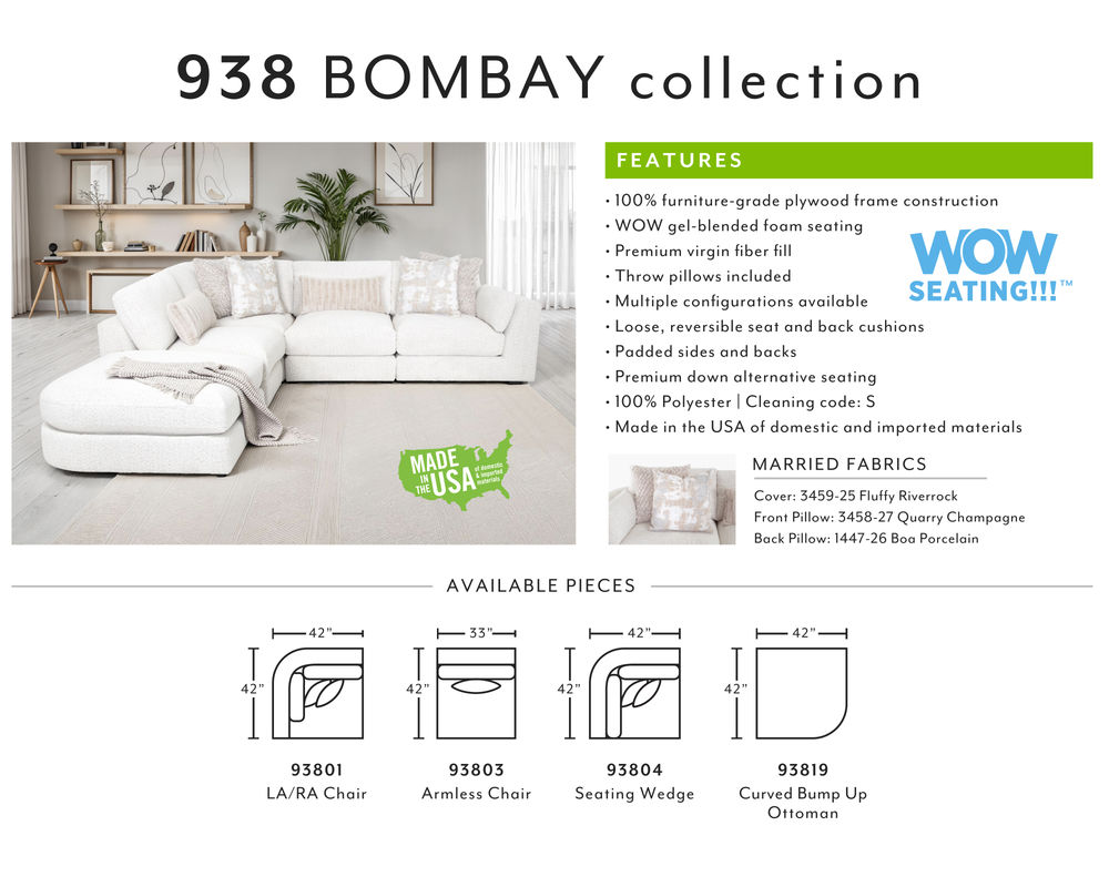 Introducing the Bombay 938 Modular Sectional, the perfect addition to elevate your living space. This luxurious sectional offers comfort and versatility, making it a must-have for any home.