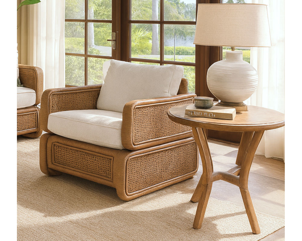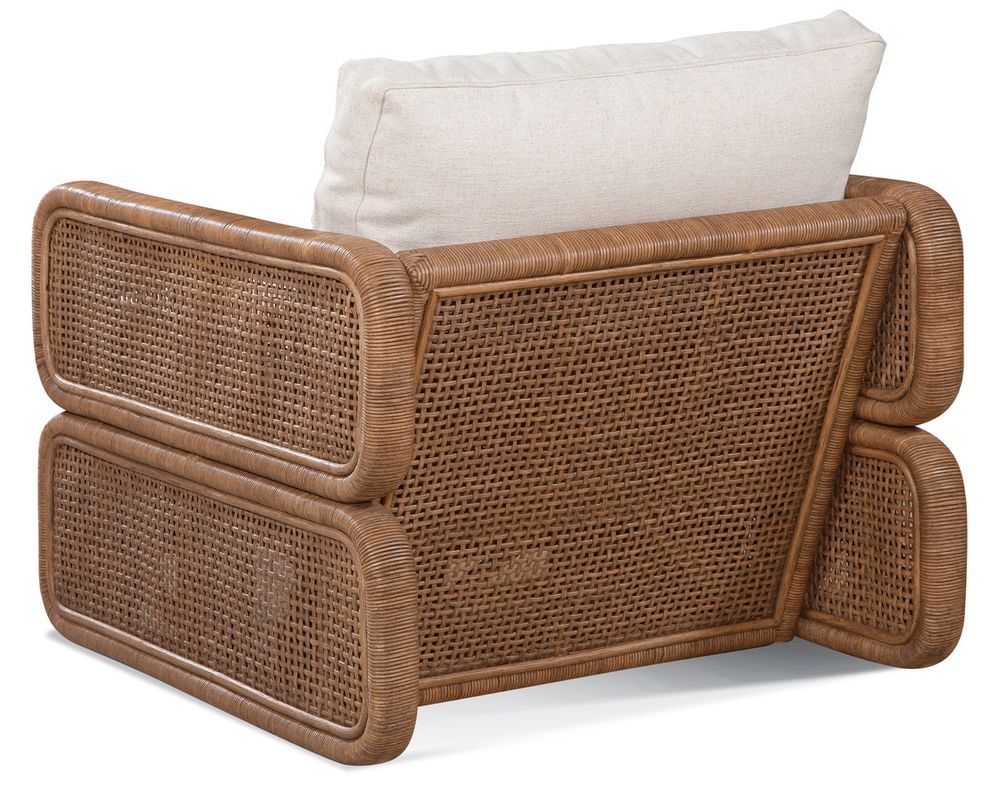 The Bonnie Rattan Accent Chair combines bold, geometric lines with the natural beauty of woven rattan. Handcrafted with a strong rattan frame and detailed wicker paneling, this chair is built to deliver both durability and a relaxed coastal style. Its Comfort Plus cushion core provides high resilience, exceptional support, and everyday comfort, while removable and reversible cushions ensure easy care and long-lasting use. Proudly made in the USA and fully customizable, the Bonnie Chair is the perfect accent piece for coastal, tropical, or transitional living spaces.