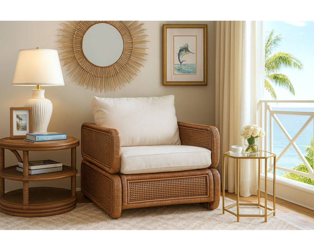 Bonnie Rattan Accent Chair Modern Rattan Craftsmanship with Coastal Charm