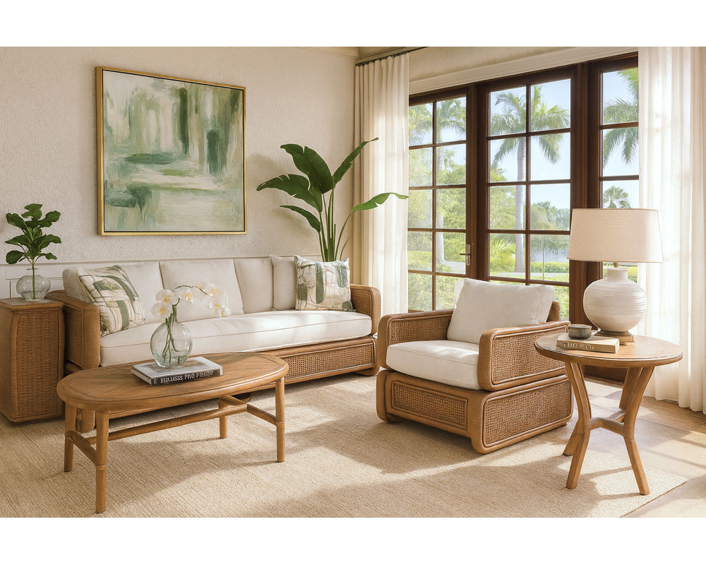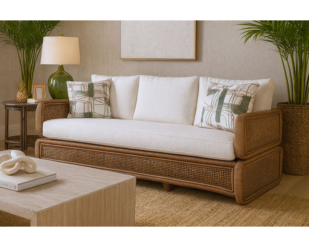 Sofa and Sectionals Rattan Furniture…Quality Built to Last Sofas and Sectionals, rattan furniture combines natural tropical materials with American craftsmanship. The rattan itself is sustainably harvested in Southeast Asia—primarily Indonesia, the Philippines, and Vietnam—where the strong yet flexible vines are cut, dried, treated, and straightened before being shipped to the U.S. In Sophia, North Carolina, skilled artisans transform the material into elegant frames and finely woven wicker designs. Each piece is custom finished in-house, highlighting the natural beauty of rattan while ensuring the durability and comfort that define Braxton Culler’s signature coastal-inspired style.