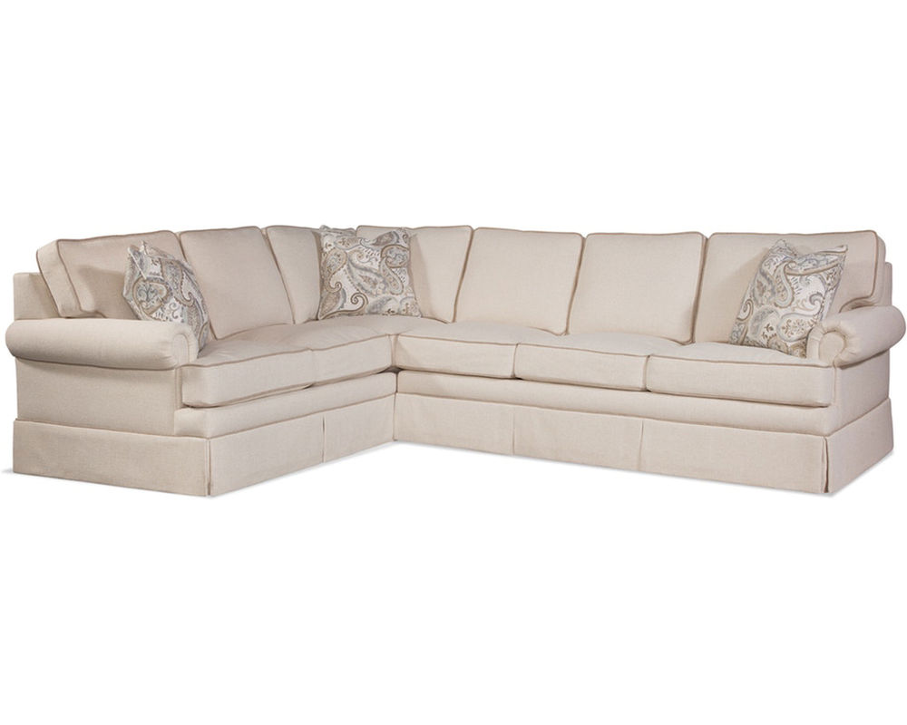 Grand scale styling and comfort is built into the Bradbury Sectional. Features rolled arms, T seat and back cushions and a tailored skirt. Includes our upgraded Comfort Spring seat cushion - handcrafted and features individually wrapped coil springs laminated top and bottom to a high performance polyurethane foam. Superb seating comfort with an average of 42 coils per seat. Over 800 fabrics available.
