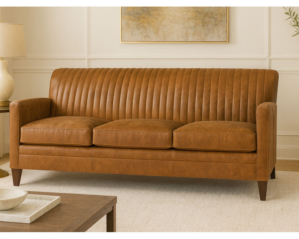 The Barnabus Sofa blends mid-century influence with the refined craftsmanship Bradington-Young is known for. Its vertically channeled tight back creates a striking architectural silhouette, giving the piece a tailored, structured look that elevates any space. Slim track arms, clean lines, and a refined profile make Barnabus equally suited for contemporary, transitional, and updated traditional interiors.