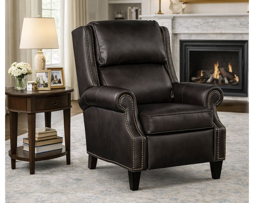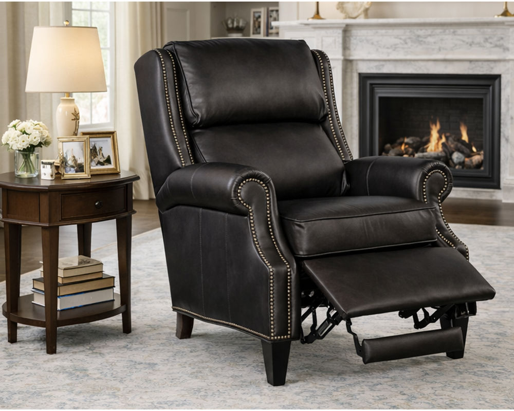 The Huss Reclining Chair by Bradington Young delivers timeless sophistication paired with indulgent comfort. With its refined silhouette, elegant nailhead detailing, and plush cushioning, this recliner is designed to be both a visual statement and a personal retreat. Whether placed in a formal living room, study, or lounge, the Huss proves that classic style and relaxation can coexist beautifully.