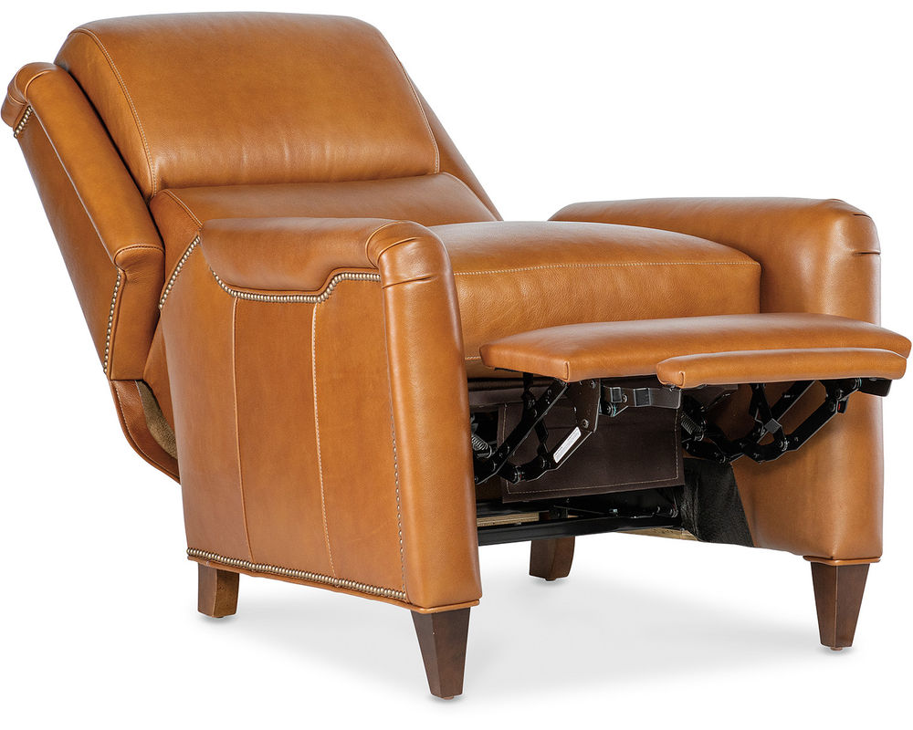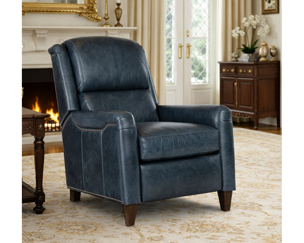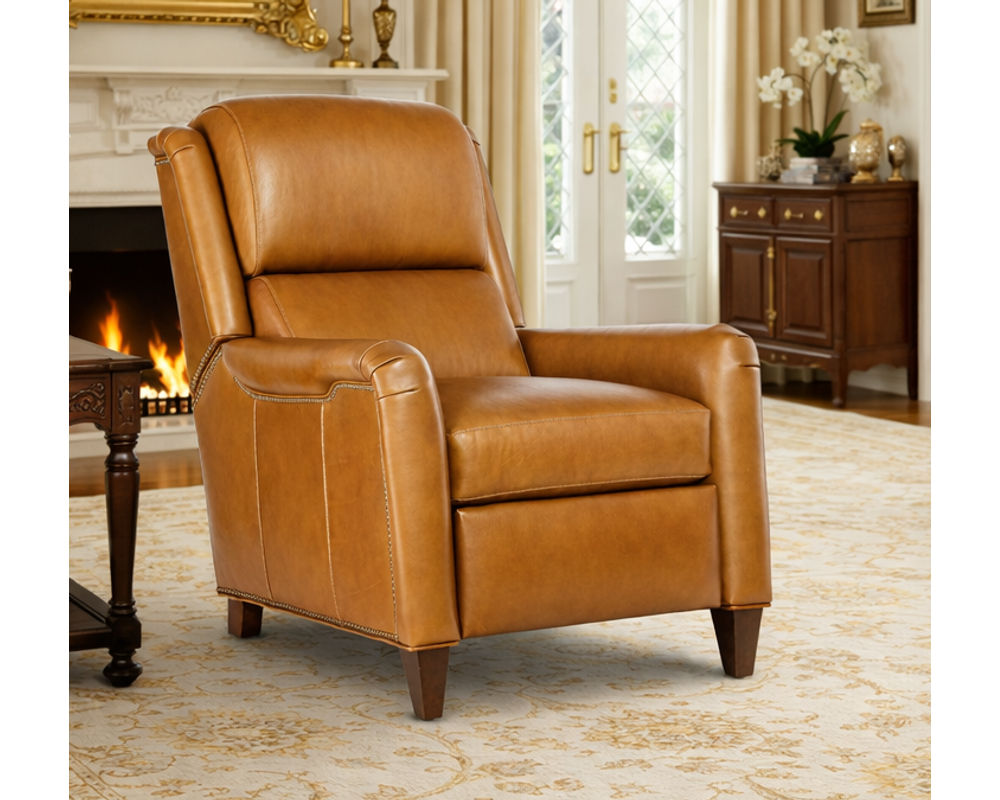 With its saddle arm design, bustle-style back, and elegant nailhead detailing, the Kyler offers a refined traditional aesthetic paired with modern reclining comfort. High legs and tapered feet lend a lighter visual profile, while customizable leather, wood finishes, and optional power recline allow you to tailor the chair to your space and lifestyle.