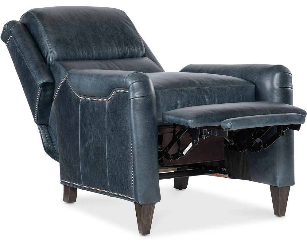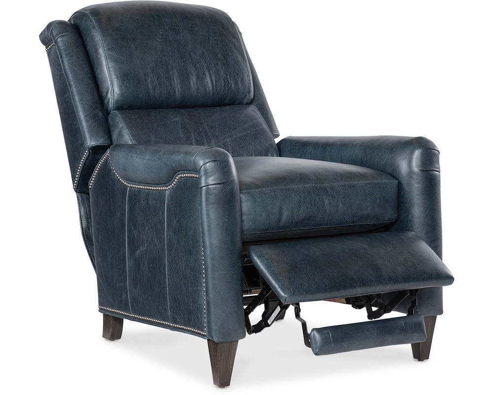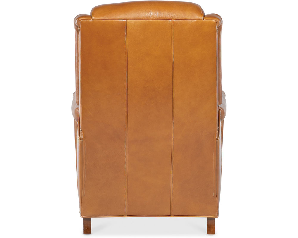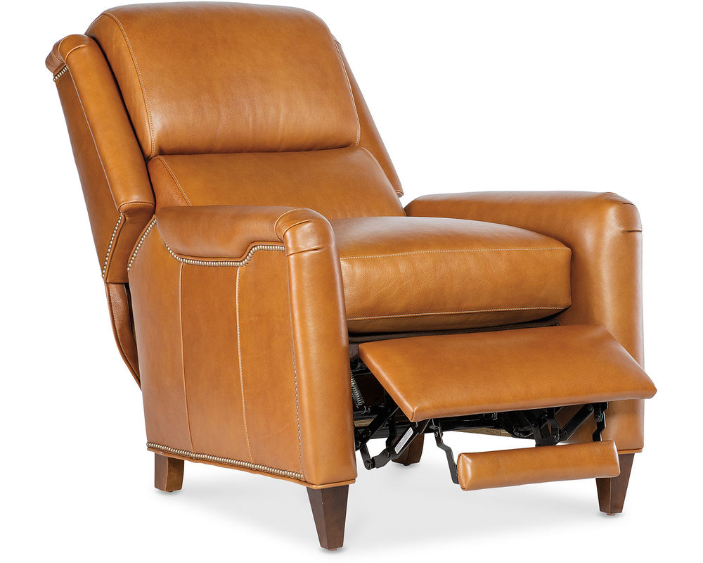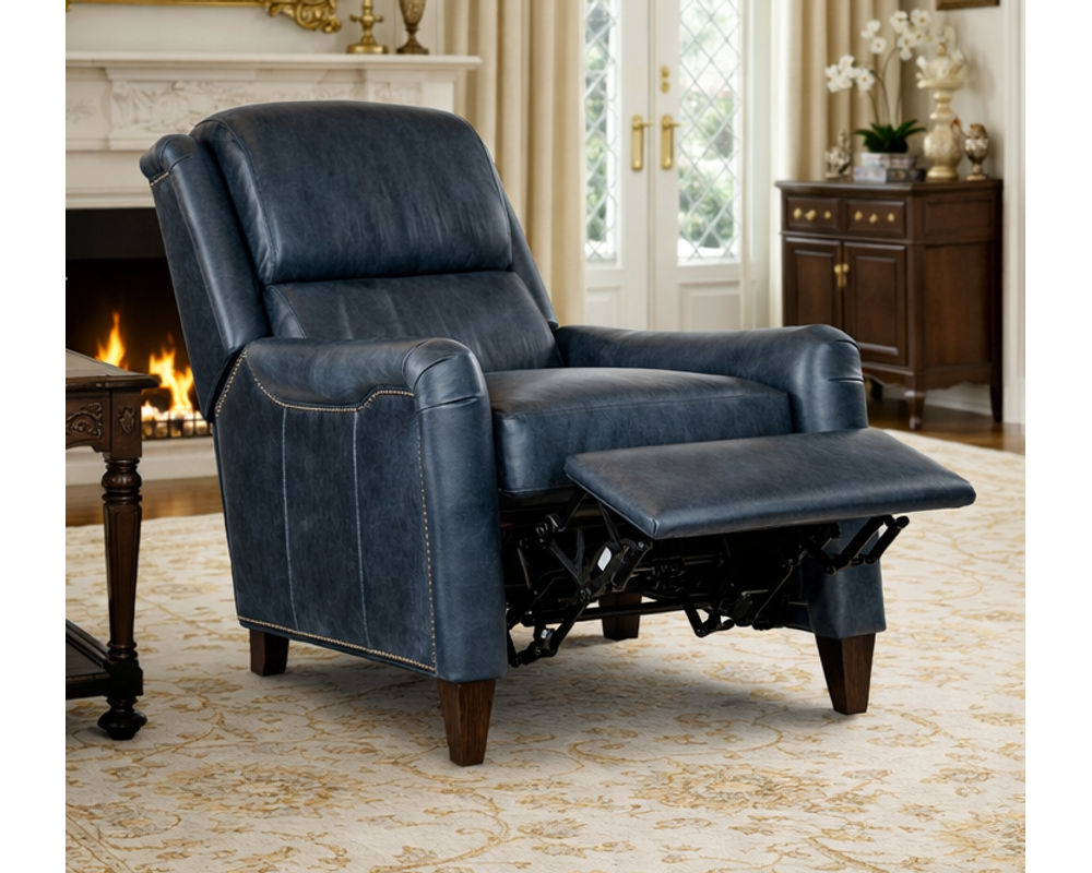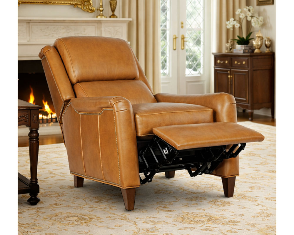 With its saddle arm design, bustle-style back, and elegant nailhead detailing, the Kyler offers a refined traditional aesthetic paired with modern reclining comfort. High legs and tapered feet lend a lighter visual profile, while customizable leather, wood finishes, and optional power recline allow you to tailor the chair to your space and lifestyle.