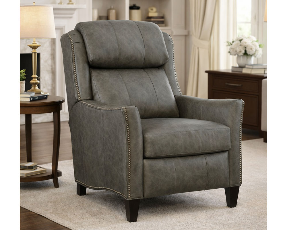 With itshigh-leg silhouette, tailored arms, and refined nailhead detailing, the Lancaster Recliner offers the look of a stationary accent chair with the added benefit of smooth reclining motion. Pushback recline comes standard, with an optional power recline upgrade available for effortless relaxation. Thoughtful customization options—including nailhead finishes, contrast welt, and premium upholstery choices—allow the Lancaster to be tailored perfectly to your space.