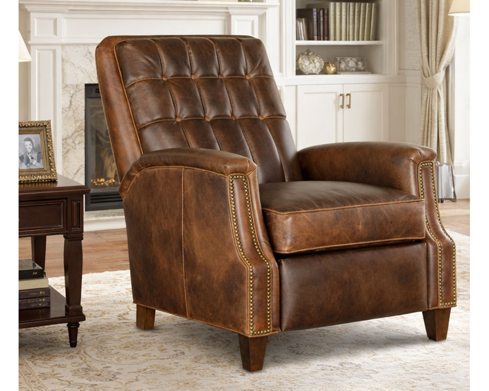 Blending traditional casual styling with tailored details, the Patrick features a button-tufted back, high-leg profile, and clean, elegant lines. Pushback reclining comes standard for effortless relaxation, while an optional power recline upgrade adds modern convenience. With a wide range of premium leathers, wood finishes, nailhead trims, and contrast welt options, the Patrick can be customized to suit both classic and relaxed interiors.