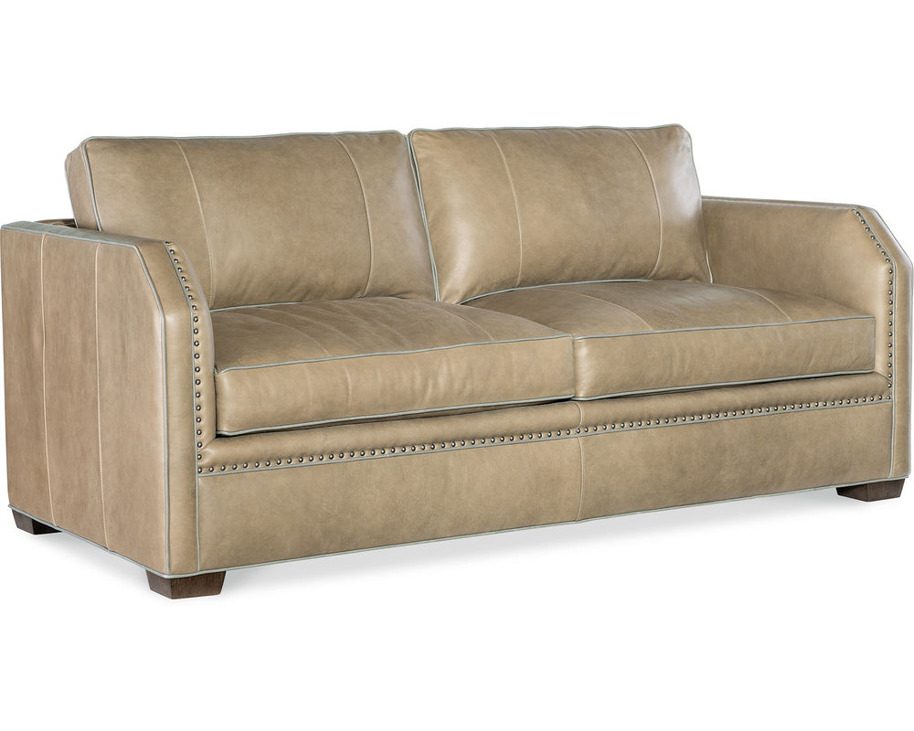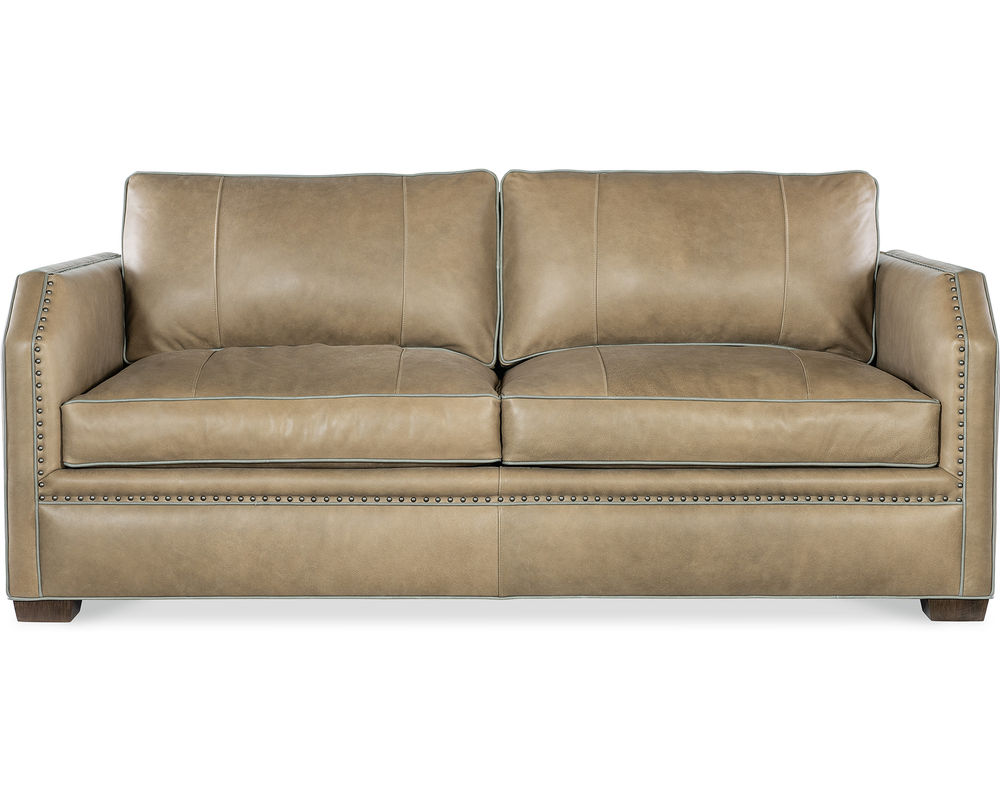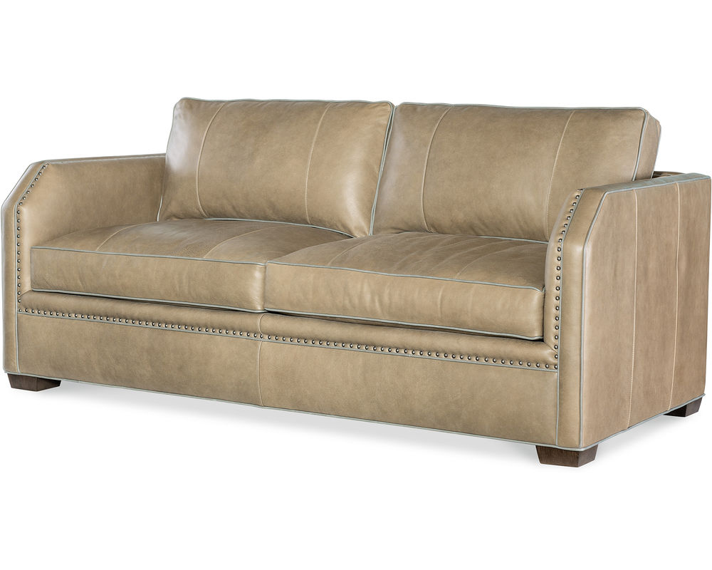 The Sutton Sofa blends clean architecture with inviting comfort, making it an effortless fit for both classic and contemporary spaces. Its beveled shelter arms create a subtle wraparound effect that feels cozy without looking heavy, while the tailored silhouette keeps the design crisp and sophisticated. Finished with refined nailhead trim and square tapered wood feet, Sutton strikes the perfect balance between polished detail and everyday livability.