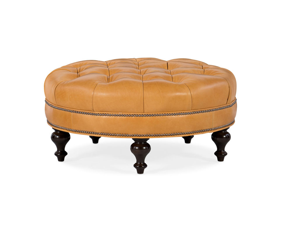 Well-Rounded Tufted Round Leather Ottoman (Made to order leathers)