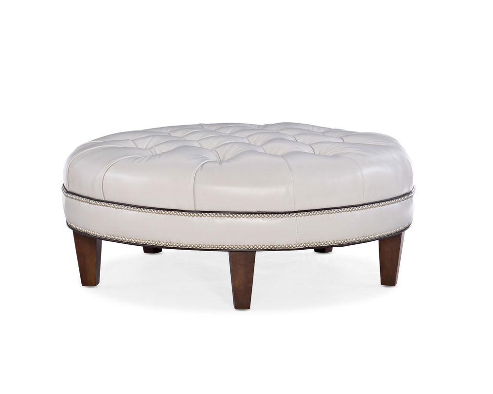 XL Well-Rounded Tufted Round Leather Ottoman (Made to order leathers)