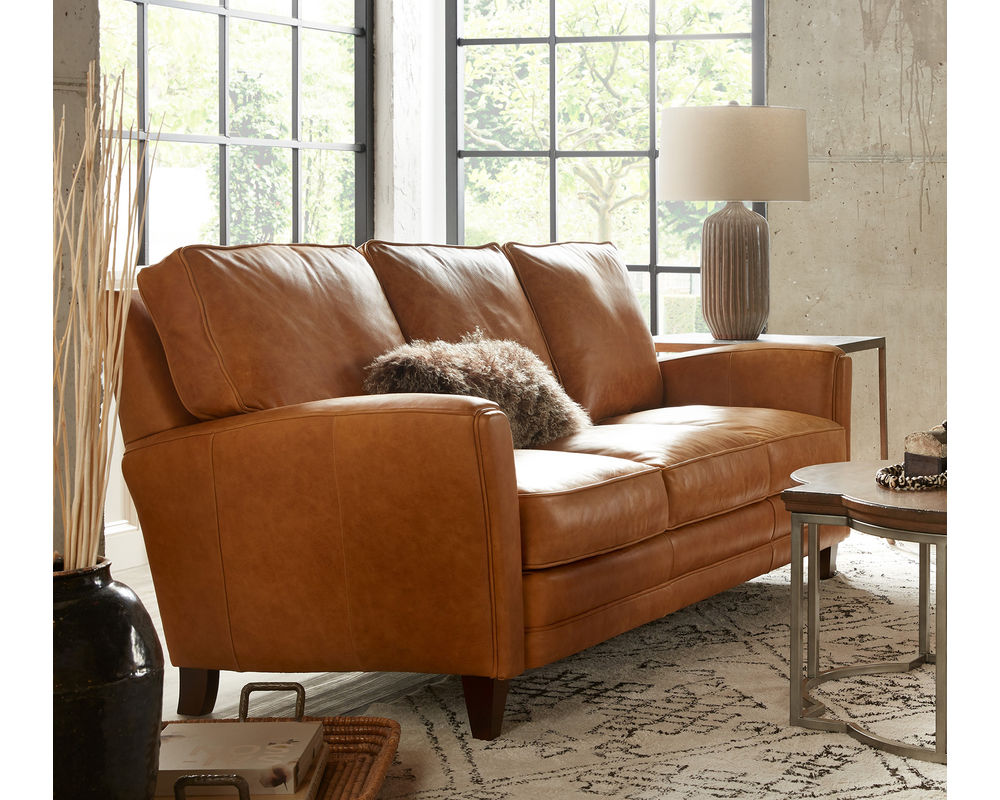 Built on Bradington-Young’s gold-standard eight-way hand-tied seating construction and a precision-engineered hardwood frame, the Zion Loveseat is crafted for long-lasting durability. Finished with wood legs available in five finish options and upholstered in your choice of 12 premium top-grain leathers, it offers both comfort and customization in one beautifully made piece.