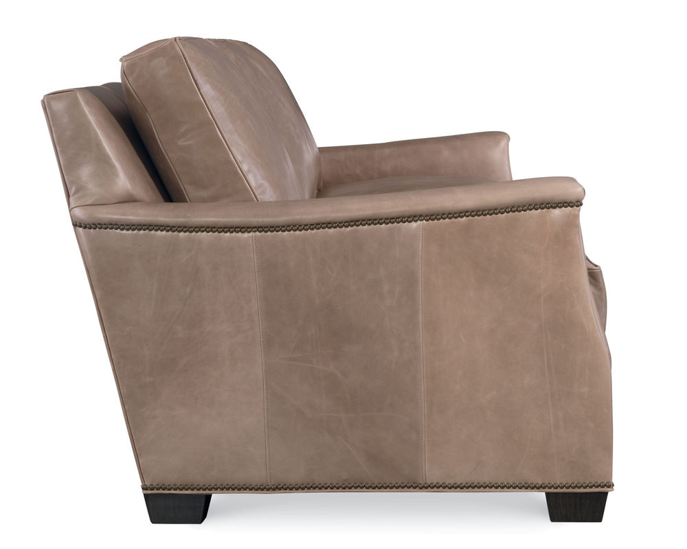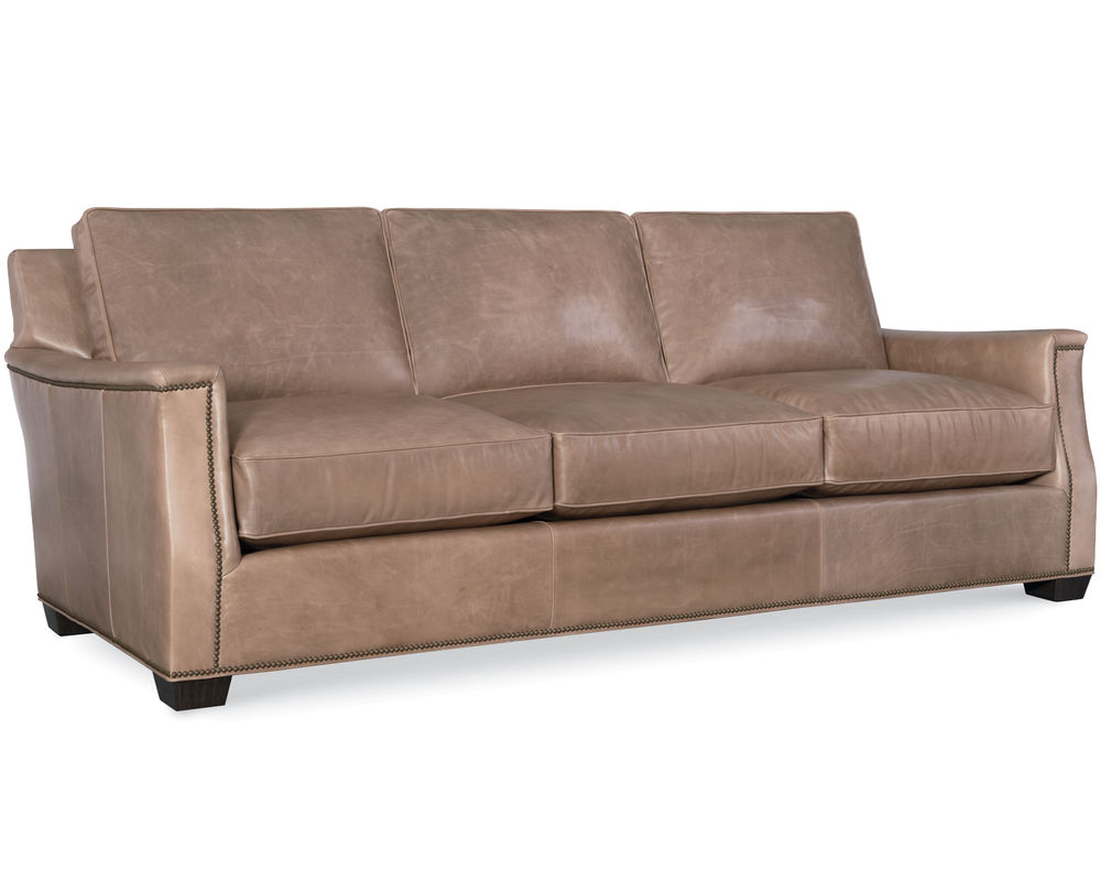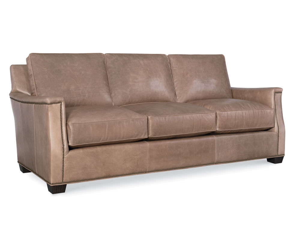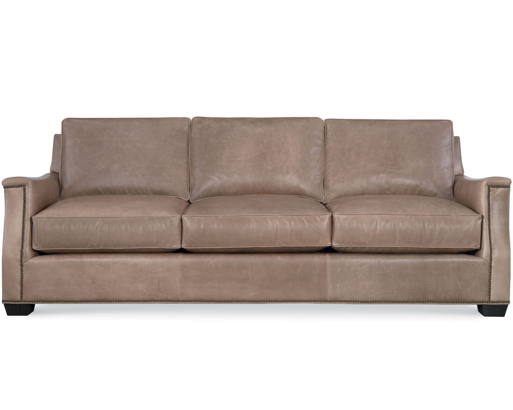 The Brandon sofa is available in two sizes - 84 and 96 inches - allowing you to choose the perfect fit for your space. It also comes in various options to suit your style and home decor. You can customize the sofa with over 45 top-grain leathers, 11 wood finishes, and seven nailhead trims.