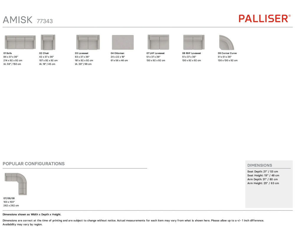 Beautiful well made sectional . We previously had a Palliser brand and know how well they are constructed , seats & cushions that don’t sag. Shipping was smooth ( even during pandemic) & we are very pleased .