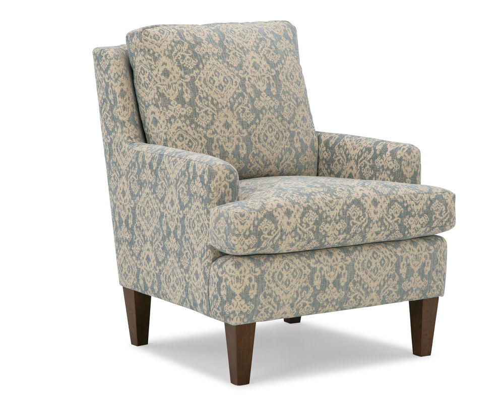 The Ennis 4040 Club Chair is a stylish transitional accent chair. The semi-attached back is generously filled with premium pillow fibers and is surrounded by gentle wings. The zipper access at the lower back allows for adjustment of the pillow fibers, while the reversible seat cushion will keep this treasured piece looking like new for many years. Choose from over 100 fabrics and three different finish options.