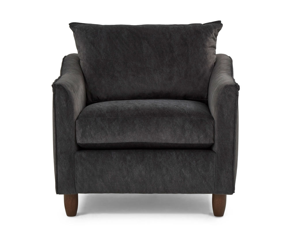 This chair is custom built for you in our Southern Indiana facilities, giving you the freedom to choose from over 100 fabrics for both the body cover and three distinctive finish options. This allows you to create a truly unique chair that is tailored to your style. It is also highly durable, with a sturdy frame and high quality construction that is designed to last.