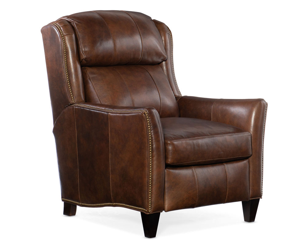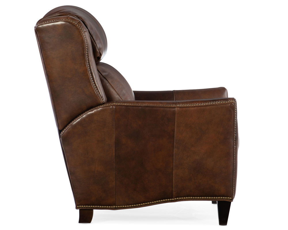 The Lancaster Recliner is offered in hundreds of leather options. Comes with a standard mahogany finish but other finishes are available. It features a bustle seat back and a Spring Down seat. Comes standard with #9 Natural nail. Power recline and battery packs are available for an up-charge. There is something irresistible about a plush recliner that often makes it the most desired seat in the house. After all, who doesn’t enjoy the indulgence of lounging like a king or queen at the end of a long day? Emanating in luxury – and proving that comfort and sophisticated design can co-exist – our recliners guarantee long hours of relaxation without having to forgo style. With a wide variety of recliners available, it’s easy to express your personal style while achieving your “royal-status.” Hand-crafted with the highest quality reclining mechanisms available today for a deeply luxurious ride, all you’ll have to worry about is who gets control of the remote. Make it your own with a selection of more than 30 premium leathers and an assortment of nail head and wood finish options.