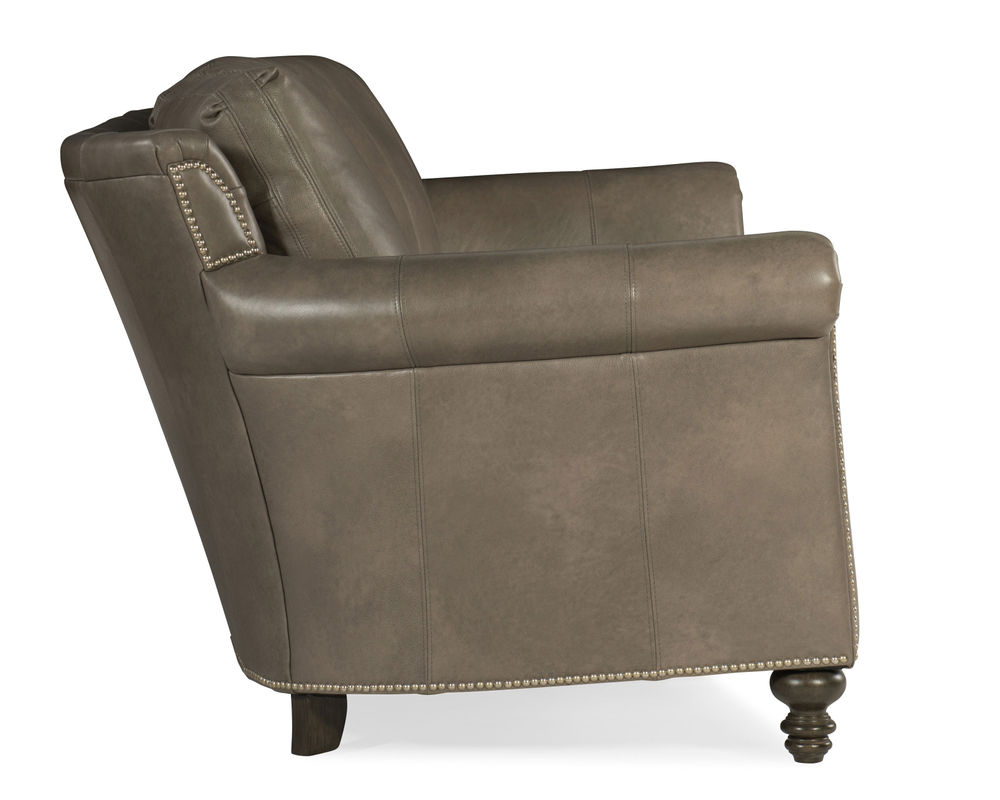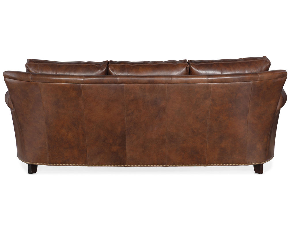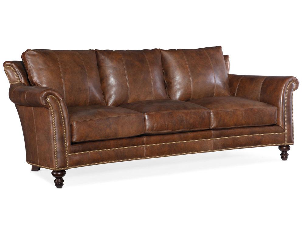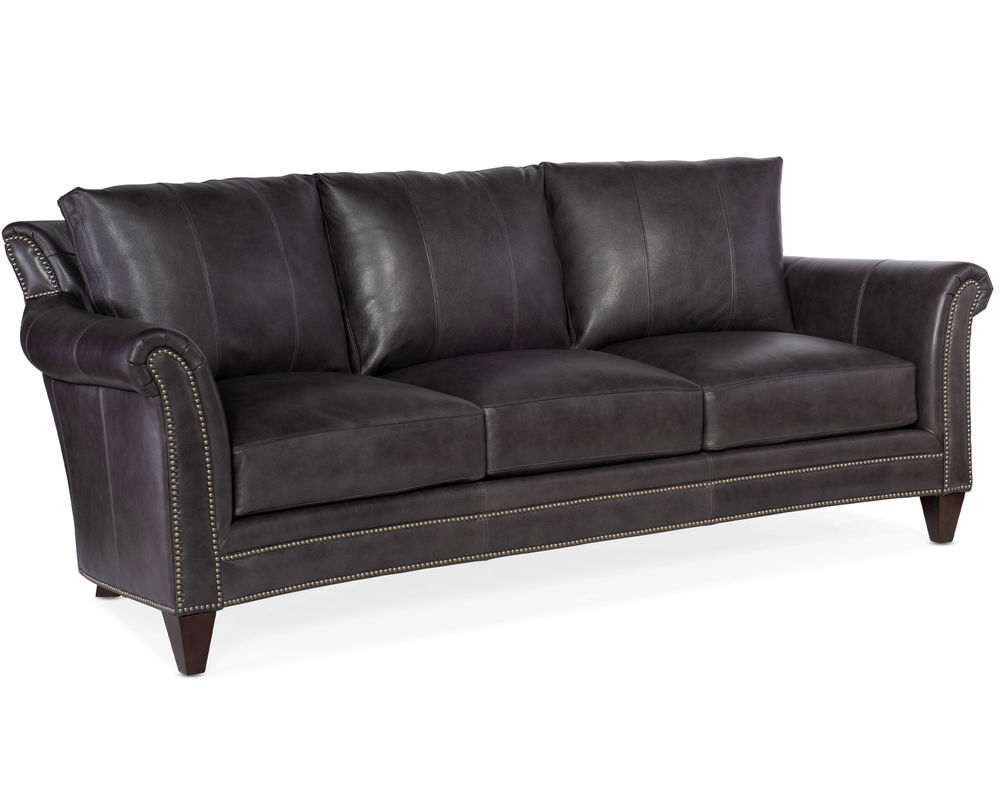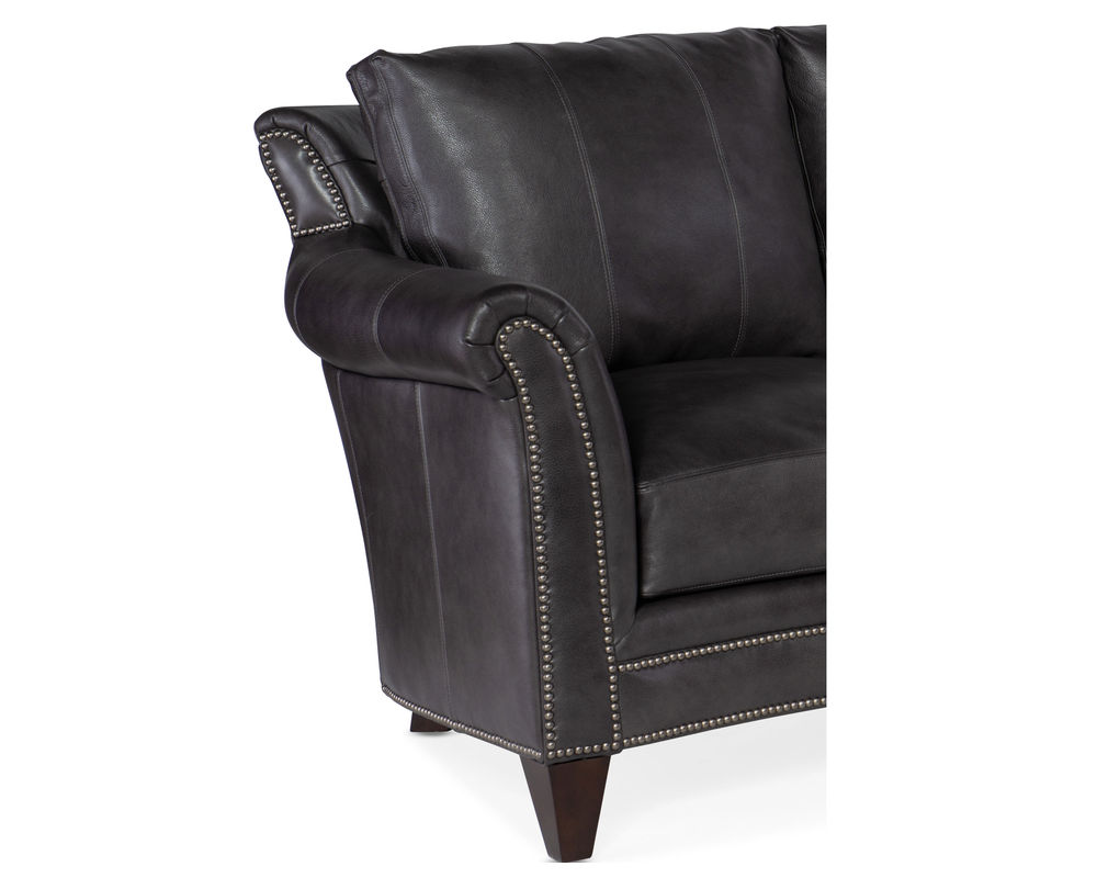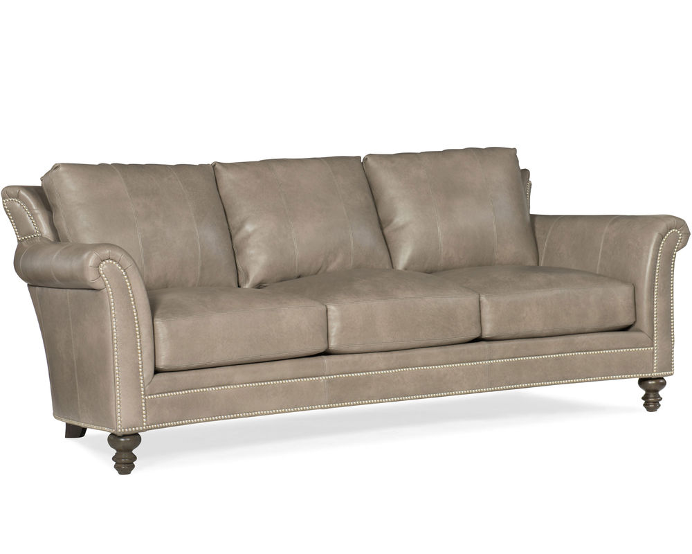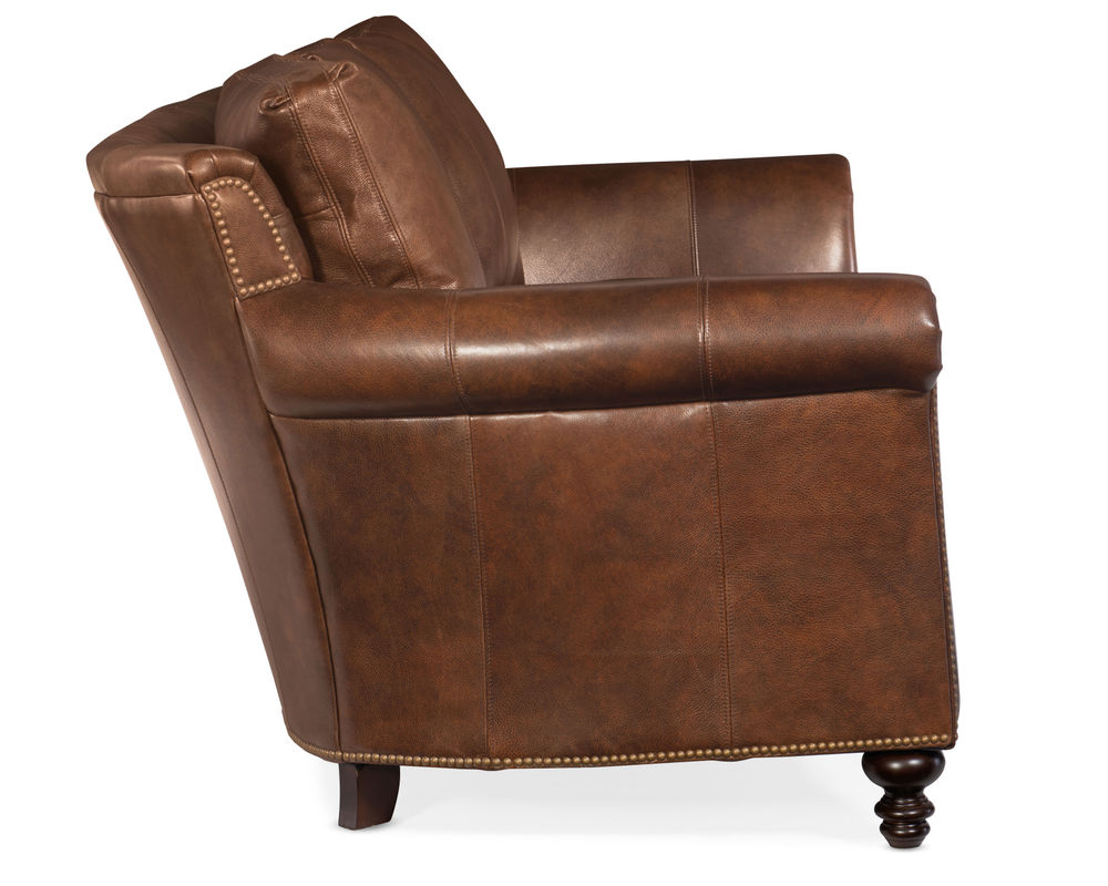 The Richardson Stationary Sofa 8-Way Tie is offered in hundreds of leather options and includes a standard nailhead trim #9 in natural finish. Other decorative nailhead finishes are available. Comes with a standard mahogany finish but other finishes are available. It features a loose back and a spring down seat. Meticulously hand-crafted by artisans with decades of upholstered furniture engineering experience, Bradington-Young is the ultimate choice for luxury stationary seating. Featuring genuine eight-way hand tied custom coil construction – the industry benchmark for comfort, lasting quality and a consistent ride across the entire seating surface – we take pride in creating the most comfortable, stylish and highest quality leather seating available. From sophisticated traditional styles to luxe modern with a variety of designs in between, make a statement in your home with the ultimate blend of luxury, style and comfort with Bradington-Young. Our uniquely styled stationary frames are available in more than 30 premium leathers and an assortment of nail head and wood finish options to further customize your look.