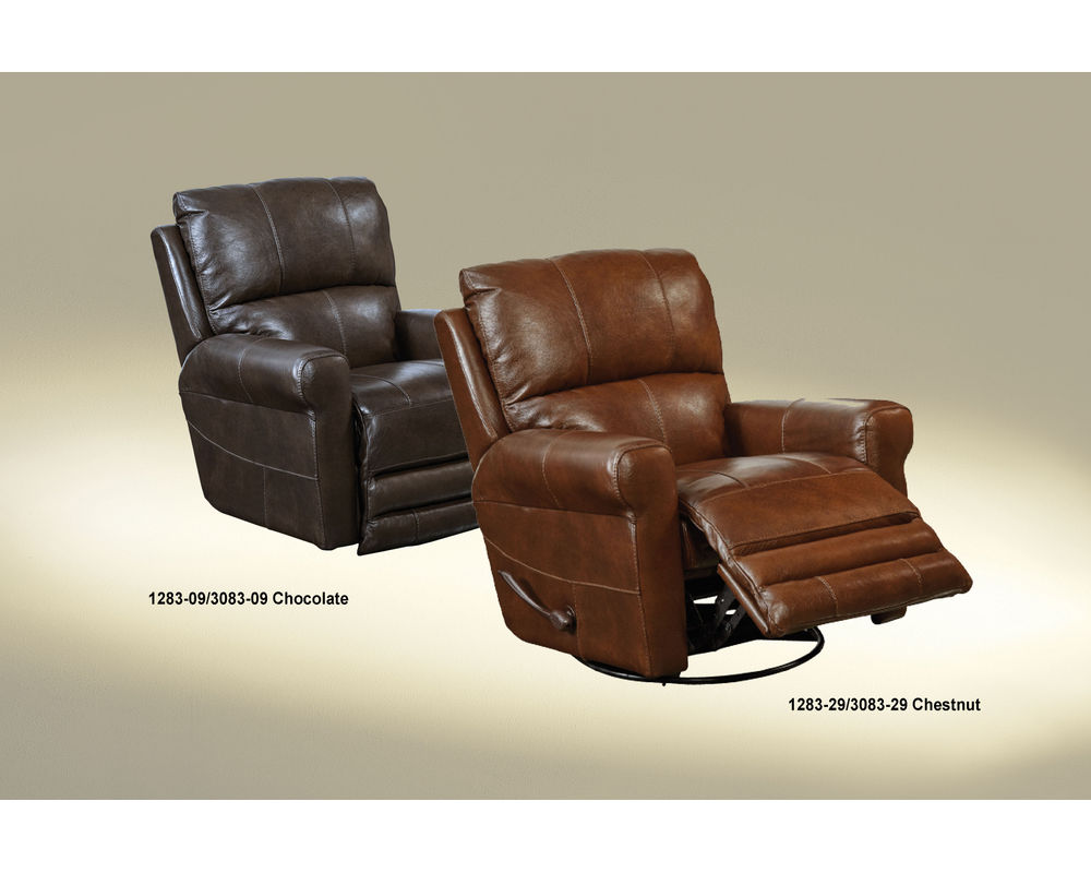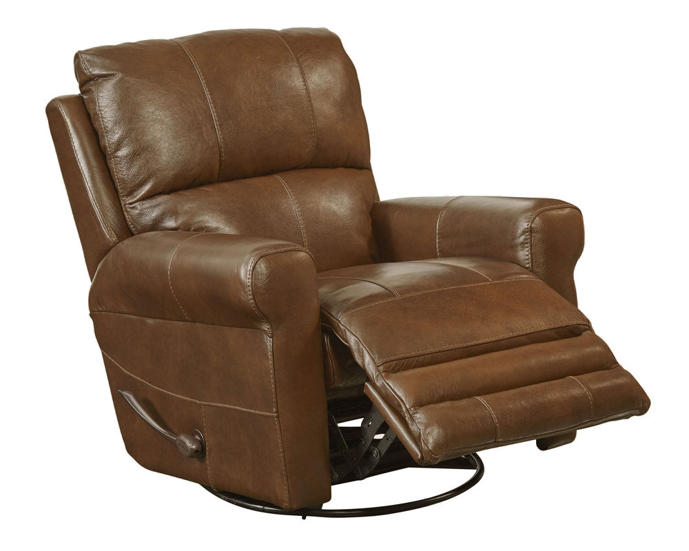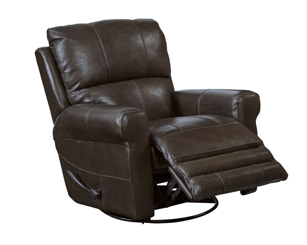 Add a piece of traditional and regal decor into your sitting area or living room when you bring home the Catnapper 4766 Hoffner Leather Touch Recliner. This stately recliner comes in a chocolate color that can suit the decor of any traditional space. Made with thick, supple Italian leather, this ultra comfortable and luxurious reclining chair features a lay flat reclining mechanism that allows you to nap on it just as you would on a mattress. On its leather upholstery, decorative contrast stitching is present.