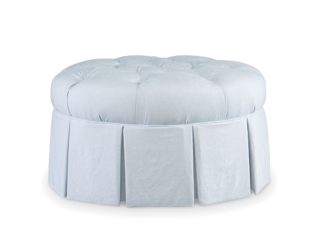 One of the most striking features of this ottoman is its detailed skirt, adding a touch of refinement to its overall appearance. The button-tufted top adds to its aesthetic appeal and provides a comfortable and luxurious seating experience.
