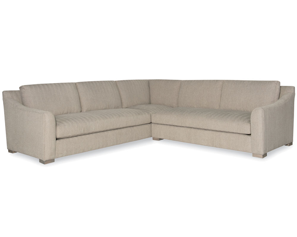 The Fisher Sectional boasts a sleek, sloping flared arm design that adds a touch of elegance to its overall contemporary aesthetic. The solid wood block feet not only provide sturdy support but also enhance the sectional's modern appeal, making it a perfect fit for any modern or transitional home.