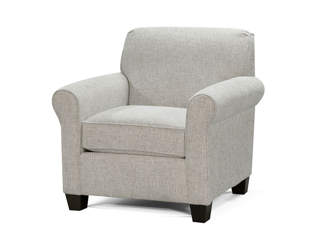 Introducing the Angie 4634 Chair, the perfect blend of sleek, simple and comfort. This stylish chair is designed with a tight back, P-shaped roll arm and an exposed wood leg, creating a unique silhouette. Choose from a variety of fabrics to customize the look of your chair from understated and sophisticated to fabulous and fun. In addition to the chair, the Angie collection includes a sofa, loveseat, ottoman, floating ottoman chaise and sectional, plus twin, full and queen sleepers. The Angie 4634 Chair is the perfect addition to any home, combining comfort and style in one chic piece.