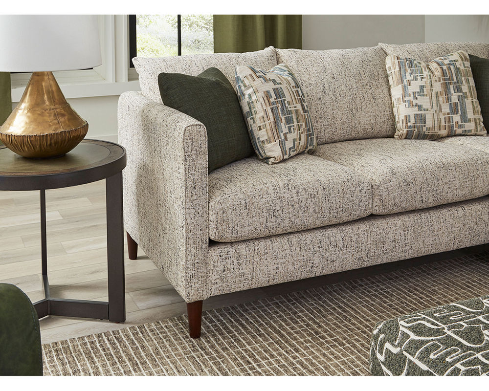 The Kylie 3K00 Sofa boasts a modern twist on traditional design elements. The tall cone-shaped legs add an elegant touch, while the simple tuxedo arm adds a contemporary edge. This combination of classic and modern design creates a timeless piece that will elevate any room.