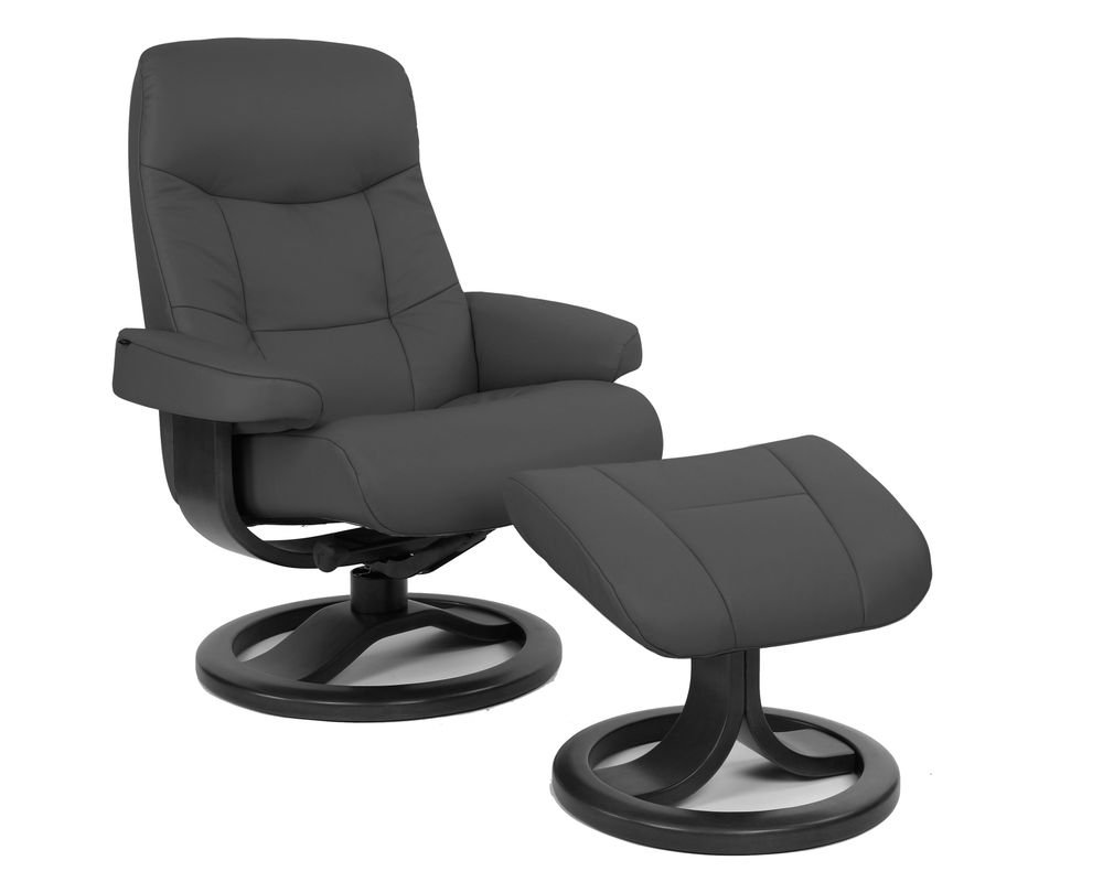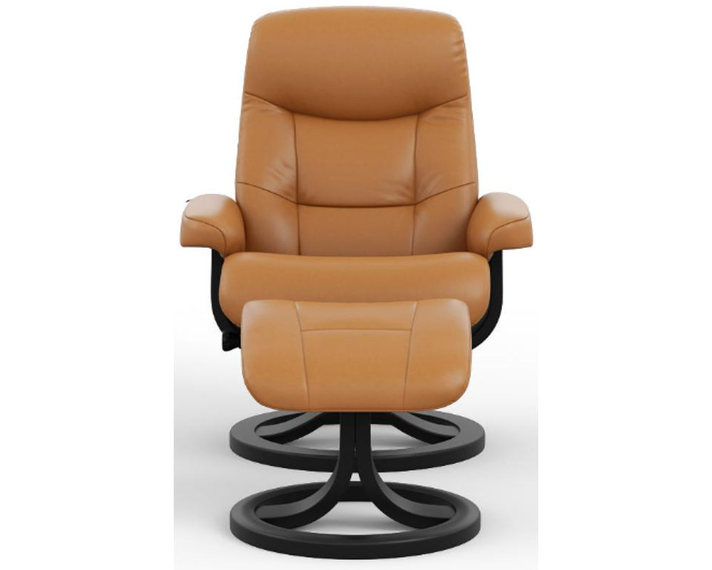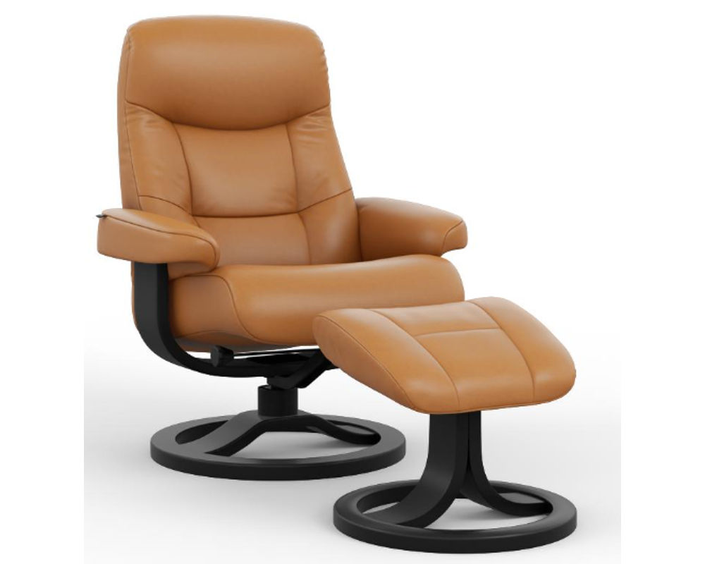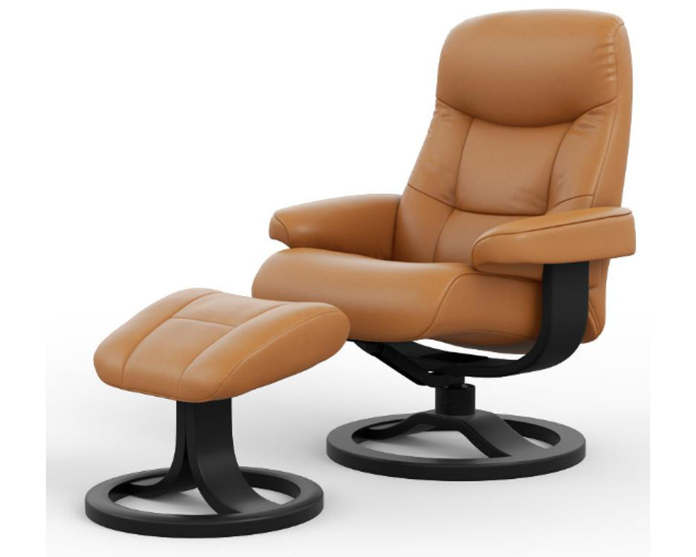 Introducing the Mudal R Swivel Recliner and Ottoman from Fjords, the epitome of relaxation and style. This ergonomic recliner, designed with your comfort in mind, is a must-have for any living room. Crafted with top-grain leather, it offers a perfect blend of durability and luxury. But what truly sets it apart is its unique ability to adjust to your individual resting position, making it the perfect recliner for reading, watching TV, or even surfing the internet.
