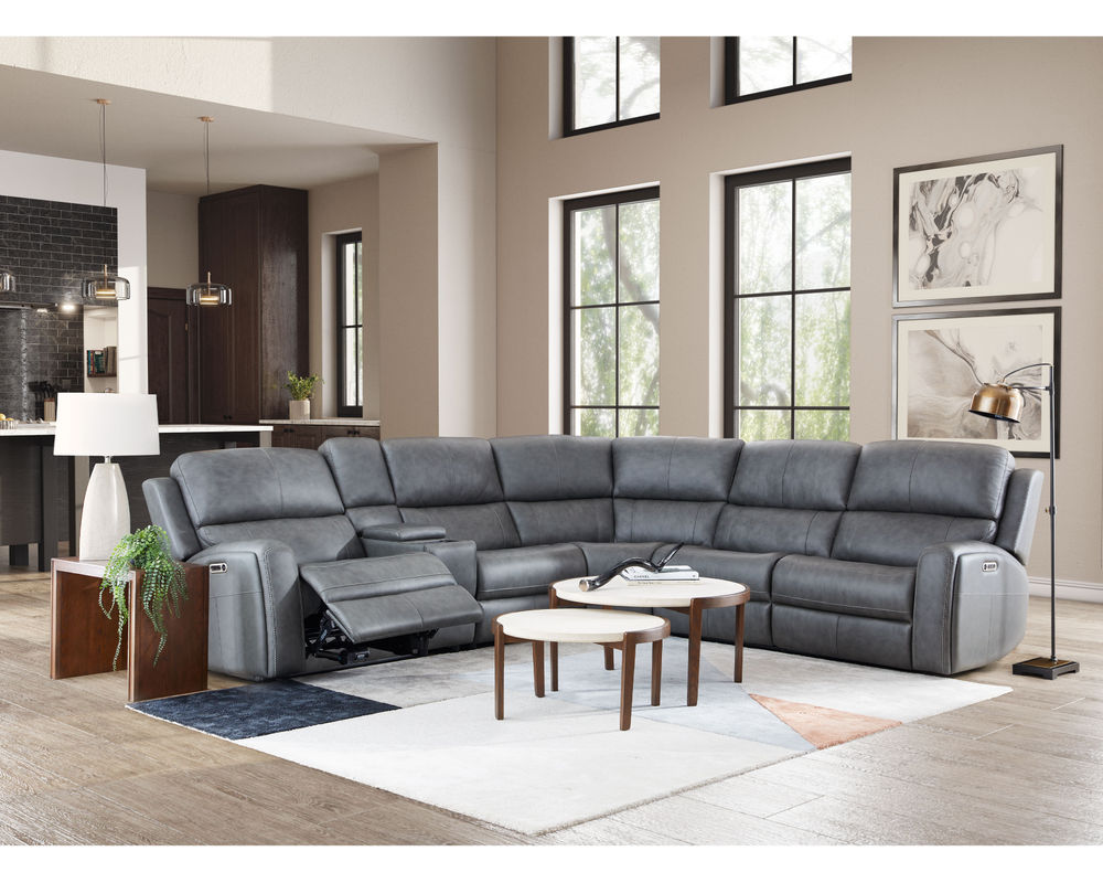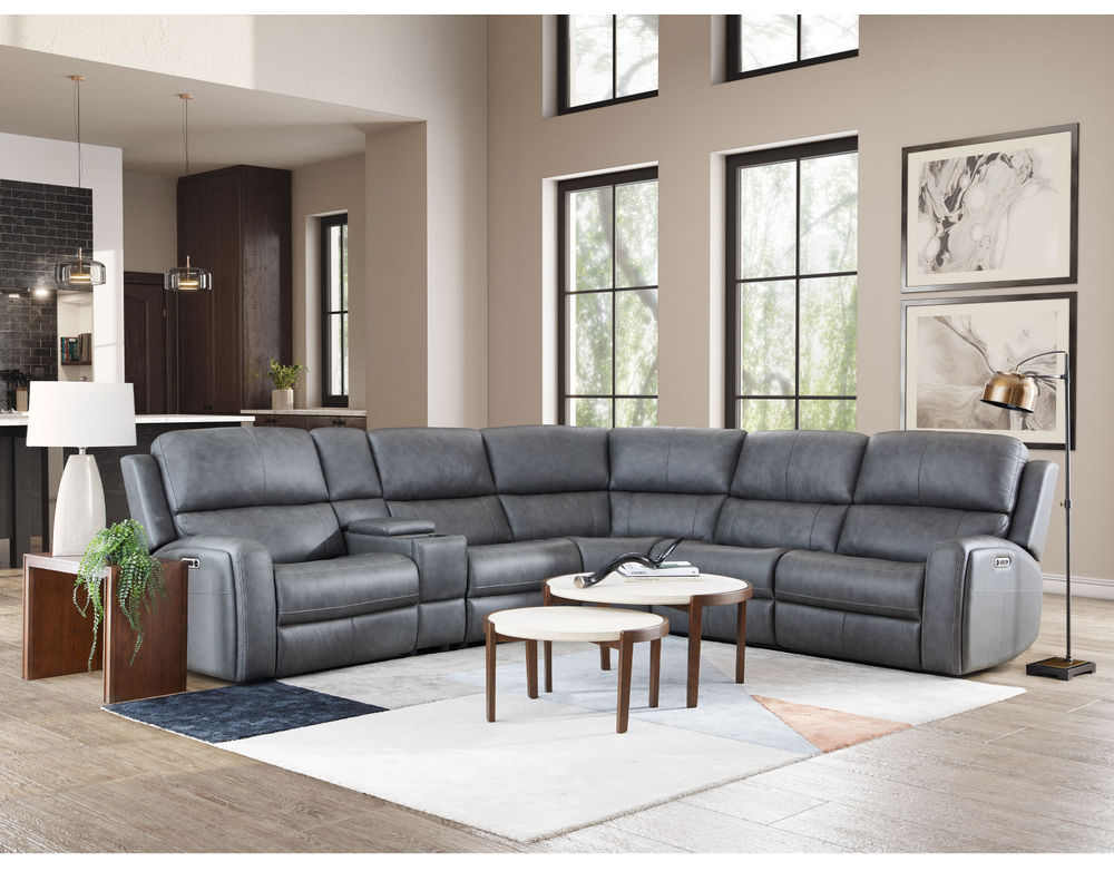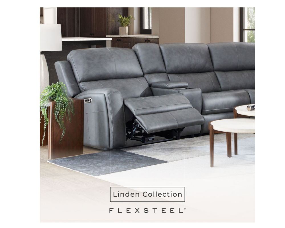 From Sofas and Sectionals.com—Experience the ultimate comfort and relaxation with the Linden 1043 Reclining Sectional. This sectional features power reclining capabilities, power headrests, and power lumbar support to take the pressure off your body. The plush, divided back cushions provide excellent support, while the padded track arms feature a stylish cross-stitch detail. With independent controls for the recline, headrest, and lumbar, you can easily adjust the settings to find your perfect position. Plus, the Zero Gravity recline technology helps improve circulation and relieve pressure from your spine. This sectional is built to last with Flexsteel's Blue Steel Spring™ at the core of each seat. Upgrade your living room with the luxurious and ergonomic Linden 1043 Reclining Sectional.