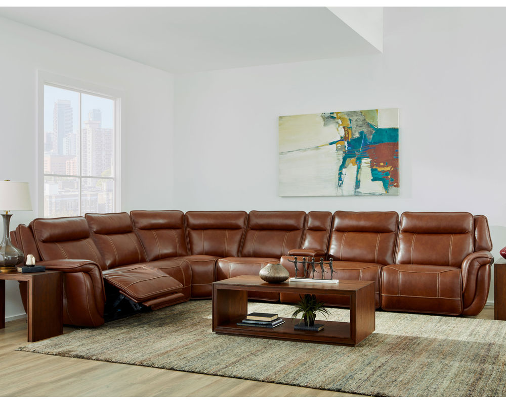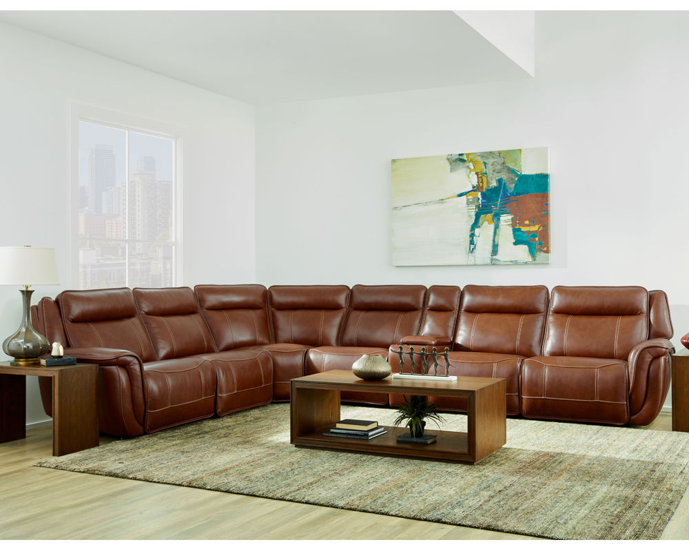 The Swift 1341 Leather Sectional from Flexsteel Furniture Industries is not only stunning to look at but also offers the utmost comfort and quality. Made with butter-soft top-grain leather, this sectional is both luxurious and durable. The contrast stitching adds a touch of sophistication and enhances the overall aesthetic of the sectional.