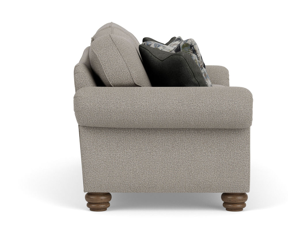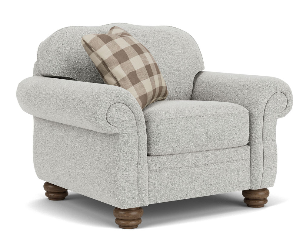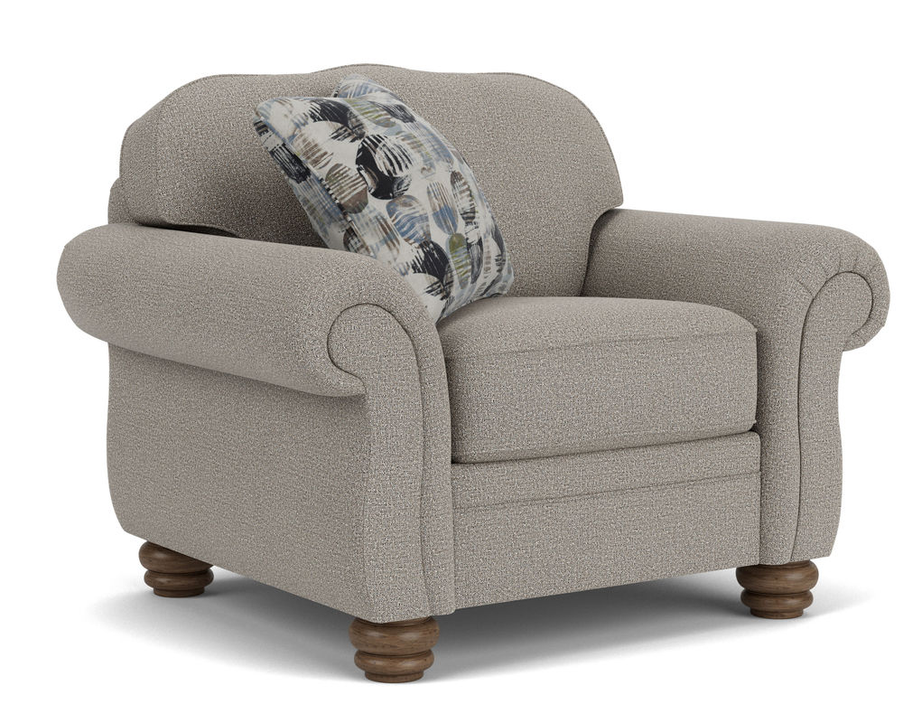 The Flexsteel Bexley 8646 Chair is the perfect piece of furniture to add timeless style to any room. Featuring an ageless design and vintage look, this chair offers the perfect blend of classic and modern appeal. Its traditional frame boasts an elegantly curved back, padded rolled arms, and bun feet, providing superior comfort and support. The plush cushions and extraordinary construction ensure a lifetime of relaxation and delight. Enhance the look of this beautiful chair with the addition of nailhead trim, and choose from over 100 performance and standard fabrics to customize it to your home. Enjoy the perfect combination of style and comfort with the Flexsteel Bexley 8646 Chair.