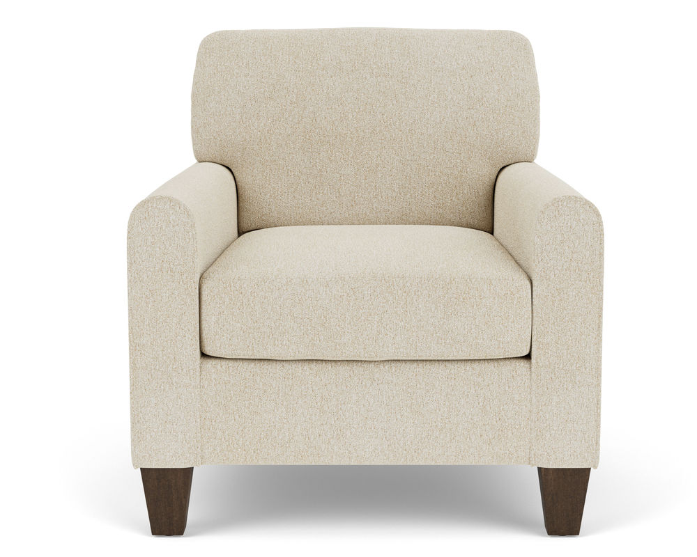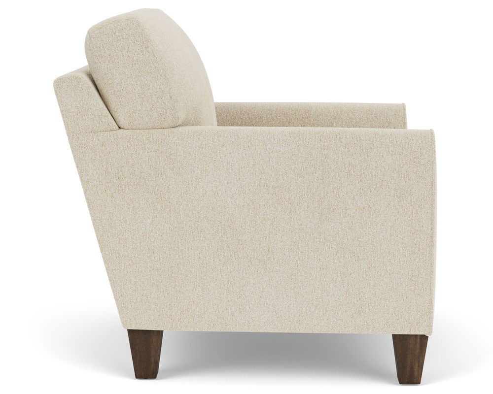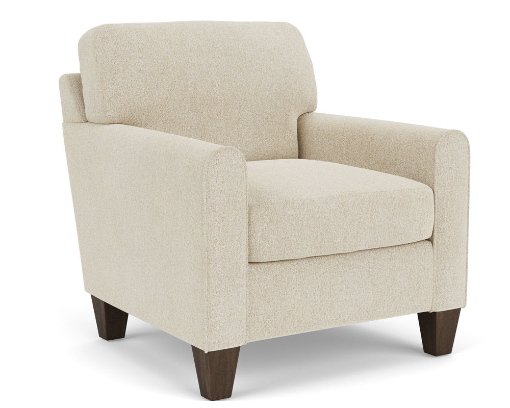 The Flexstel chair ensures you never have to settle for anything other than the perfect design, no matter your style. Rounded mailbox arms provide a clean look. Square tapered legs come in your choice of three distinct wood finishes-Florentine, Valencia, or Urban Renewal-to complement any decor. The removable square, inside seat cushion style offers you the flexibility to rotate for added longevity. Sink into the ideal level of support with your choice of our luxury or plush cushion. Complete the look and showcase your lifestyle with hundreds of different fabric choices, including high-performance and sustainable textiles. Superior frame construction and our patented C-Flex Blue Steel Springâ„¢ ensures your Flexsteel chair can be enjoyed for years to come.