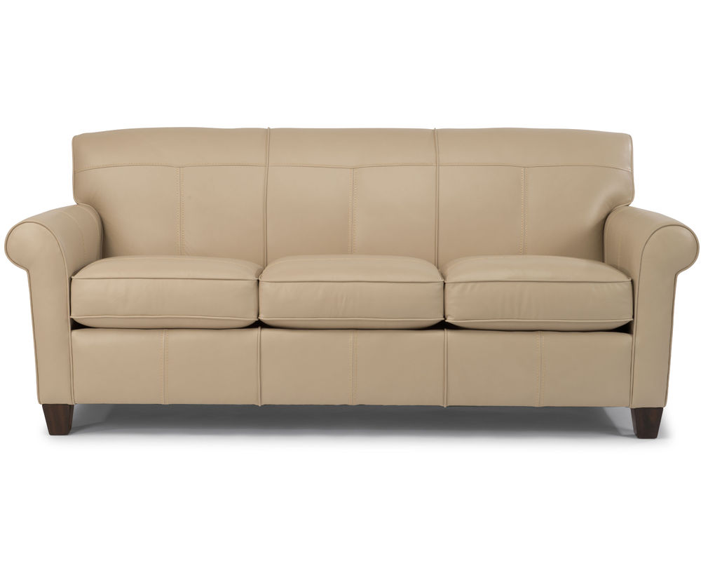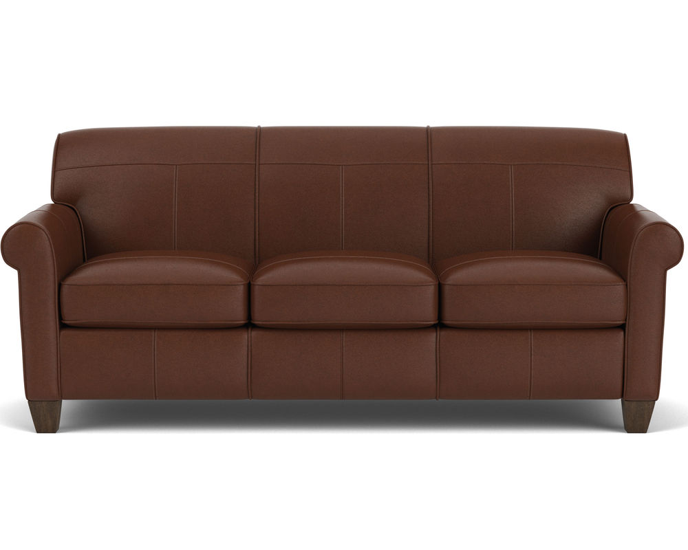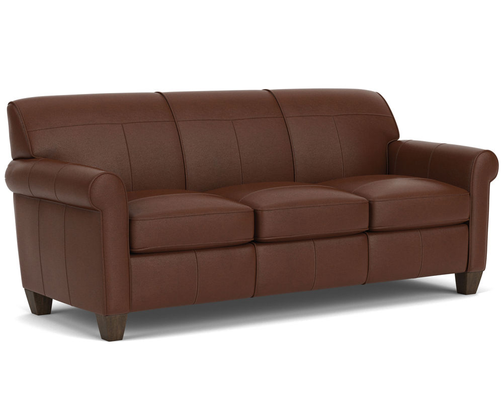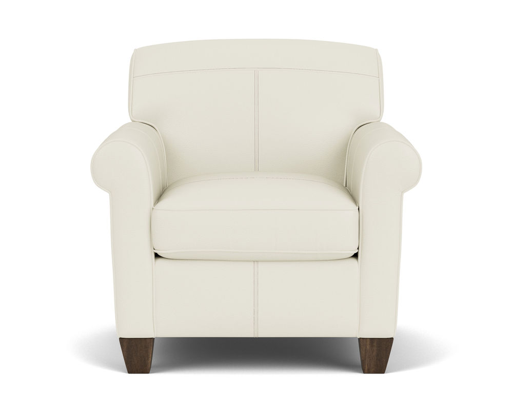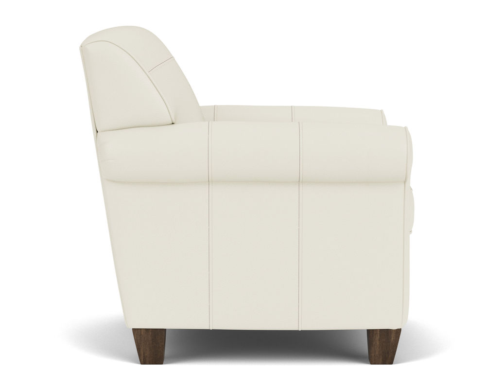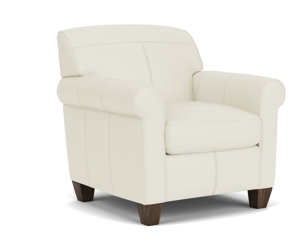 Dana is current and stylish, yet simple enough to withstand the test of time. This modestly scaled style is a great option for small spaces. With a tightly padded back, tailored roll arms and tall tapered feet, Dana fits classic touches into a streamlined design that lends openness to any space. Flexsteel only uses the finest leathers guaranteed to last. Over 40 leather colors to select from.