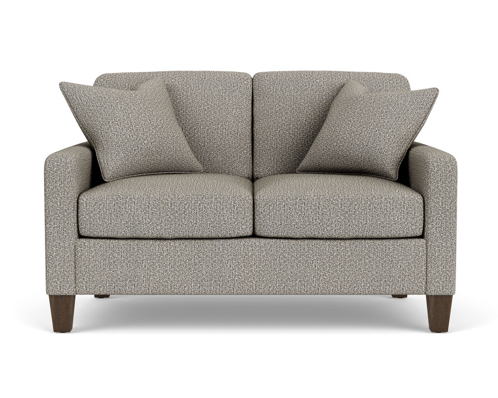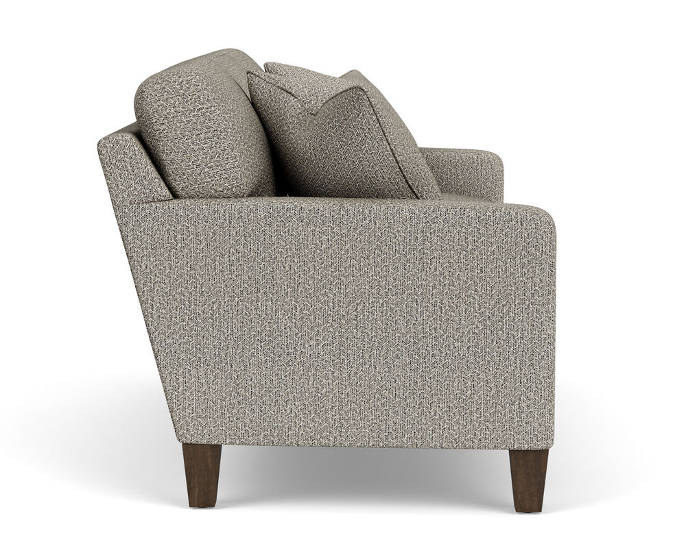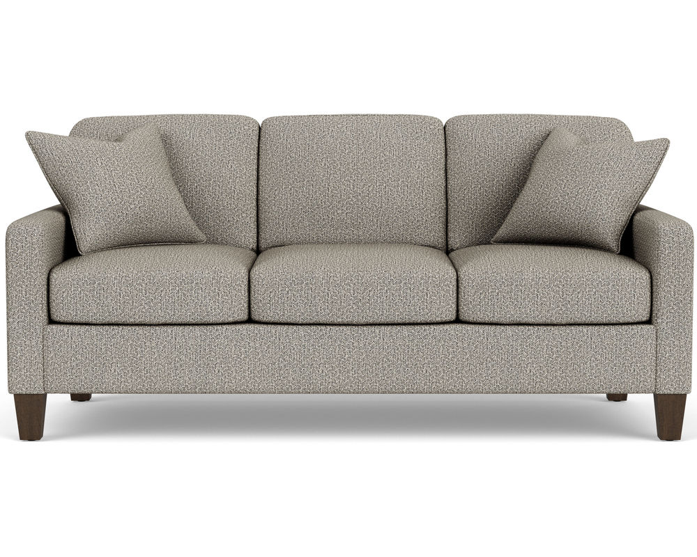 Cozy up with a loved one or claim it all for yourself with the Flexsteel sofa that lets you personalize details for the perfect look and feel. Straight track arms provide a clean look. Square tapered legs come in your choice of three distinct wood finishes-Florentine, Valencia, or Urban Renewal-to complement any decor. The removable square, inside seat cushion style offers you the flexibility to rotate for added longevity. Sink into the ideal level of support with your choice of our luxury or plush cushions. Complete the look and showcase your lifestyle with hundreds of different fabric choices, including high-performance and sustainable textiles. Superior frame construction and our patented C-Flex Blue Steel Springâ„¢ ensures your Flexsteel Living Room can be enjoyed for years to come.