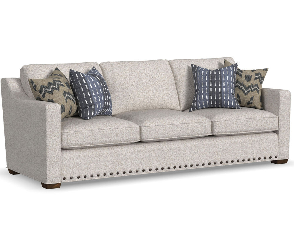 The sofa features softly sloped arms with French seams, making it look sleek and sophisticated. The thoughtful welt detail on the seat cushions adds a touch of elegance while ensuring durability. The sofa also comes with accent pillows, making it a complete package for your living space.