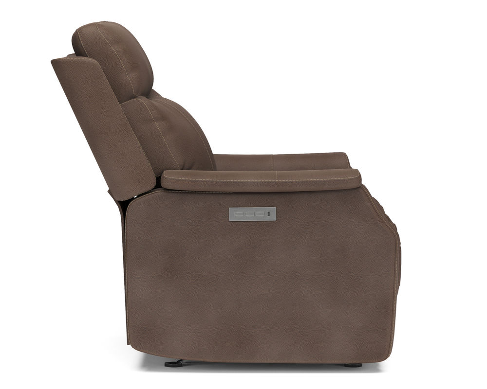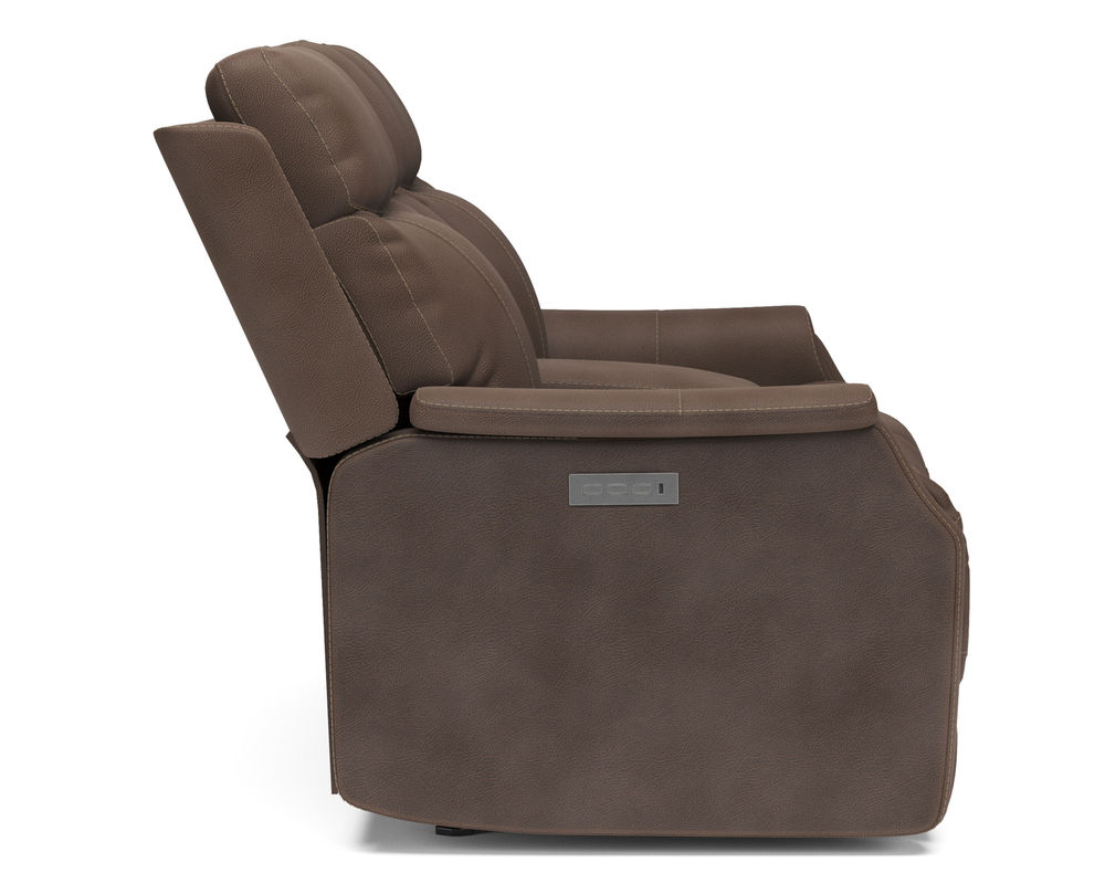 Keep everything you need for a relaxing night in close at hand with the Easton Loveseat with Console and Power Headrests and Lumbar. Designed for your convenience, this ergonomic loveseat has a storage console with beverage holders and plenty of space to keep remotes and personal items. Personalize your experience with an easy-to-access power control on the side of either arm that allows both people sitting to independently adjust the recline and headrests. With a USB charging port built into the power controls, you won't have to worry about keeping devices powered up. Additional enhancements include lower lumbar support, which you can adjust with the power controls, plush, high-divide back cushions, padded sloped track arms and thick, luxurious seat cushions. Our patented Flexsteel DualFlex Spring System™ offers a mix of firmness and flexibility as you sit and ensures that the loveseat will stay comfortable for years to come. Choose from several durable, cleanable fabric or premium leather options to create a look that blends with your home decor.