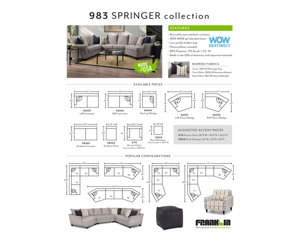 But that's not all - the Springer 983 Sectional also offers the flexibility to create your dream sectional. With seven pieces available, you can mix and match to design the perfect configuration for your space. This allows you to maximize seating and create a comfortable and inviting atmosphere for lounging and entertaining.