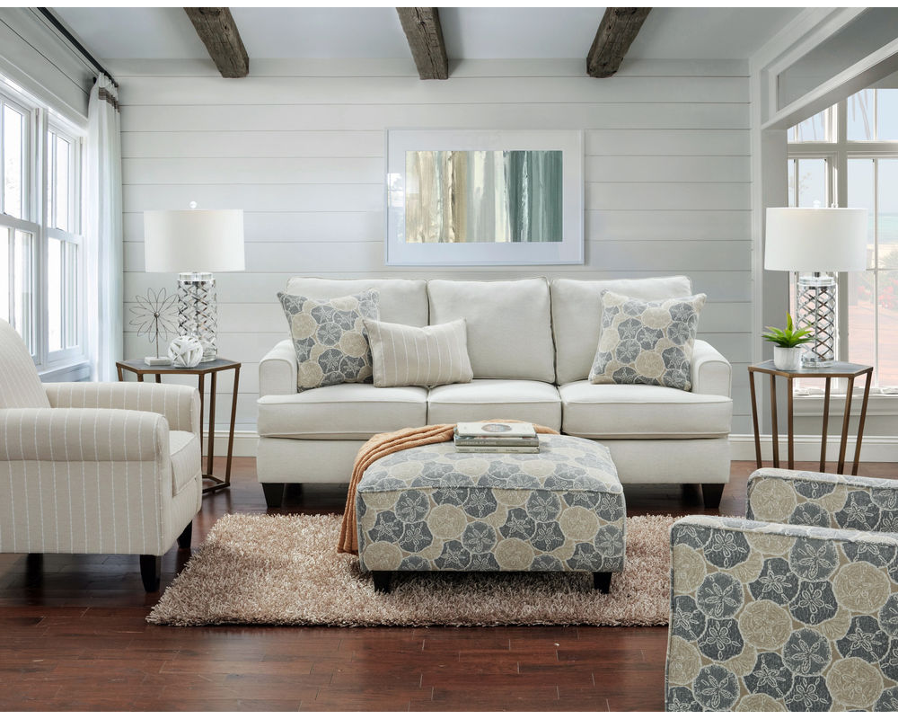 68-04-KP Max Pearl Queen Sleep Sofa, 109 Seashore Sand 38" Square Cocktail Ottoman, 402-G Seashore Sand Swivel Glider Chair, 502 Shiplap Sand Accent Chair