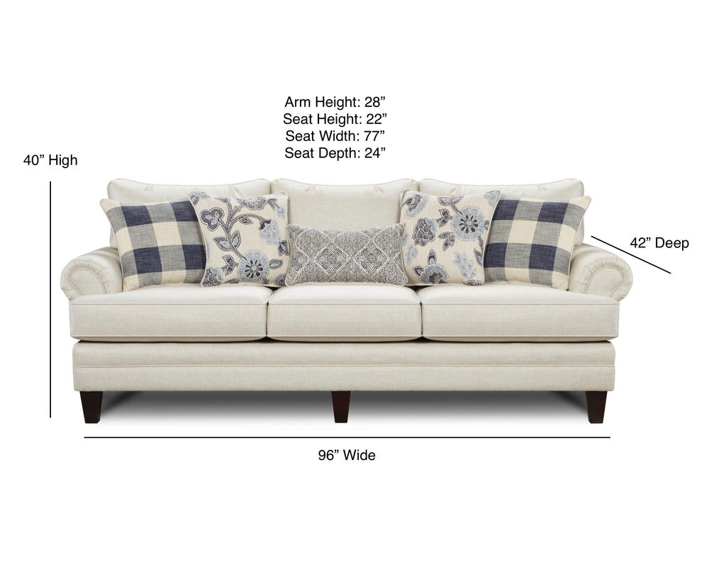 With a bold plaid pair of pillows, stunning floral accent pillows, and a Moroccan kidney pillow, this sofa offers extreme flexibility. It can easily fit into any room or home, empowering you to create the perfect blend of casual and traditional, making it a popular choice nationwide.