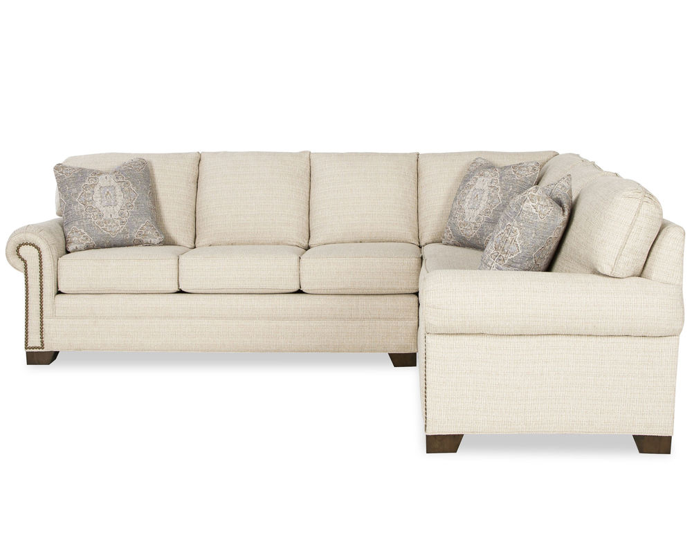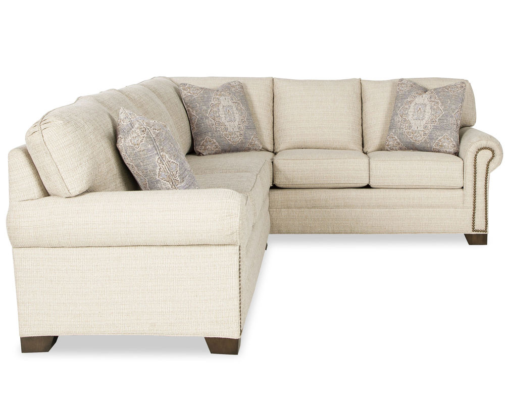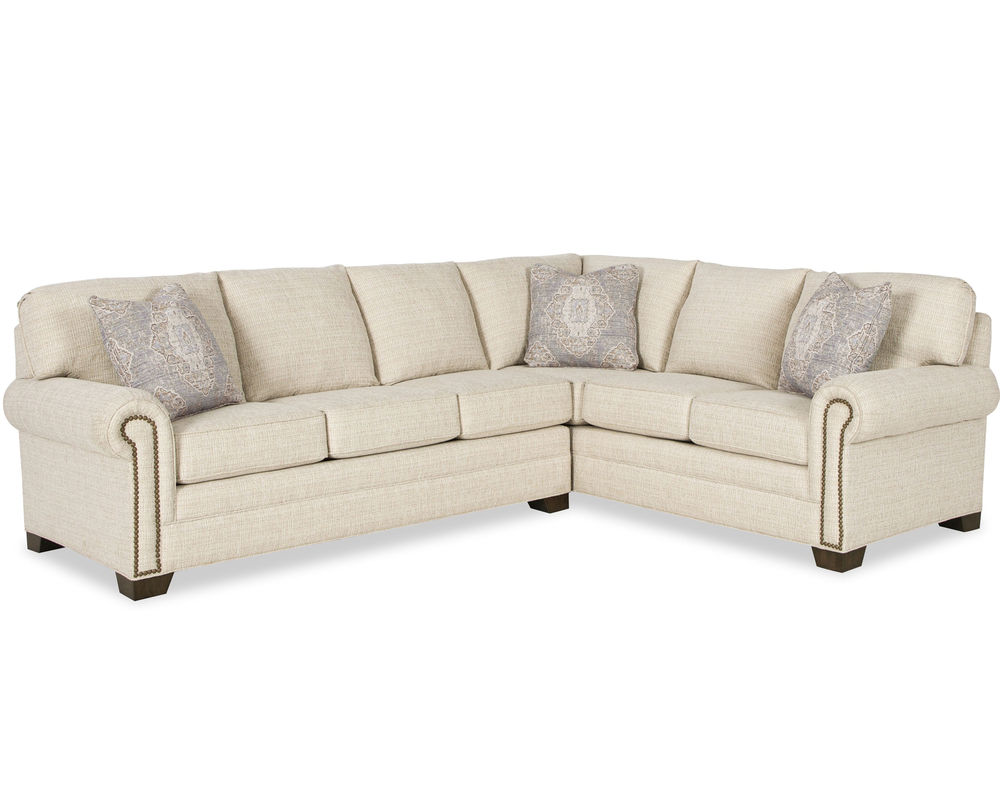 This classic sectional, from Michael 7565, brings casual sophistication to your living space. The pleated rolled arms and nail head trim create a timeless look that is perfect for relaxing in comfort. The plush seat cushions and attached backs ensure that you will be cozy and comfortable for hours. The tapered block legs give the piece a modern touch, while still maintaining a refined look. With 6 pieces included in the sectional, you can create a configuration that fits perfectly into any size room. This set also includes a matching sofa, loveseat, chair, ottoman, and sofa sleeper. If desired, the nail head trim can be removed. With this sectional, you will have years of comfort and style.