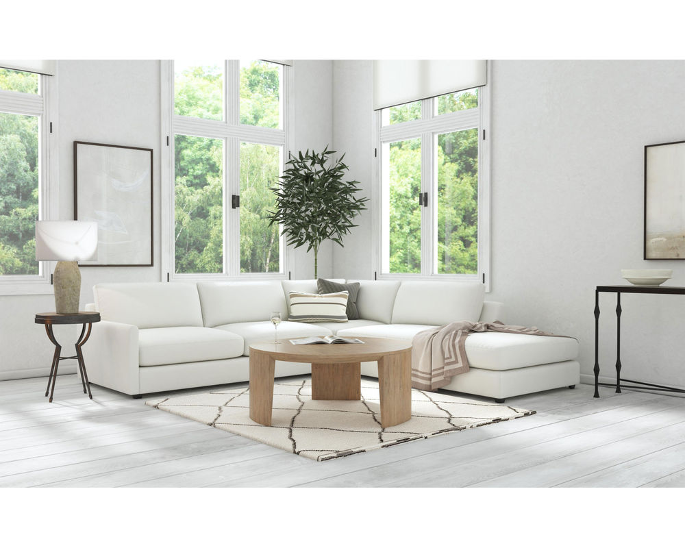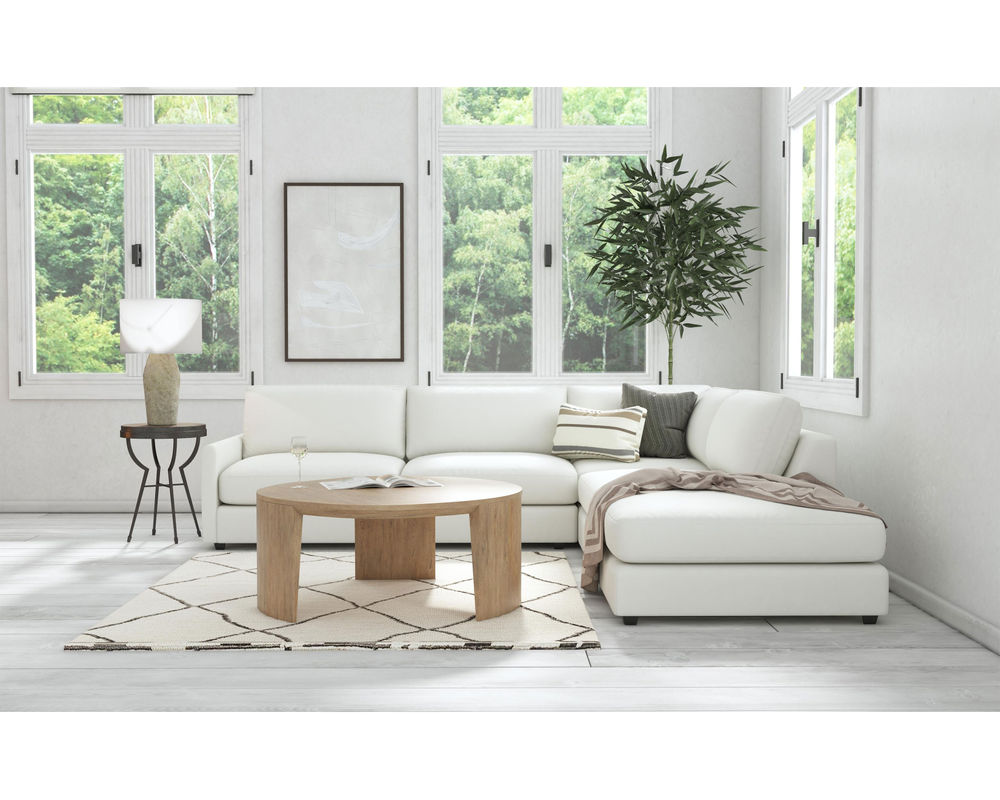 Round Cocktail Table is crafted of Mindi Solid Wood and has three wide legs 1 / 4