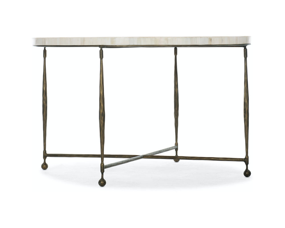 Combines a lightly-scaled bronze metal base and stretchers with a two-tone natural bone inlay top 1 / 2